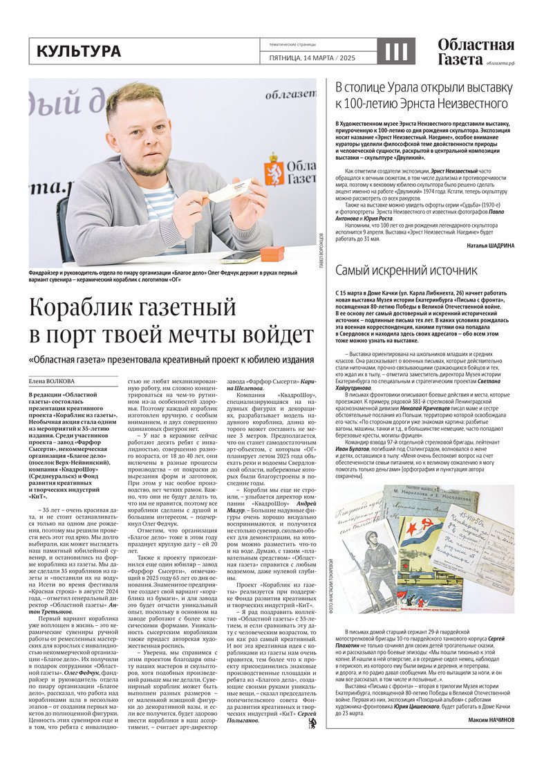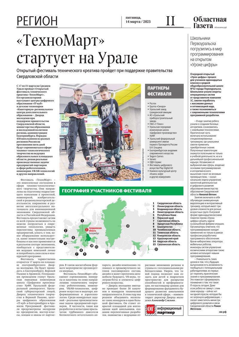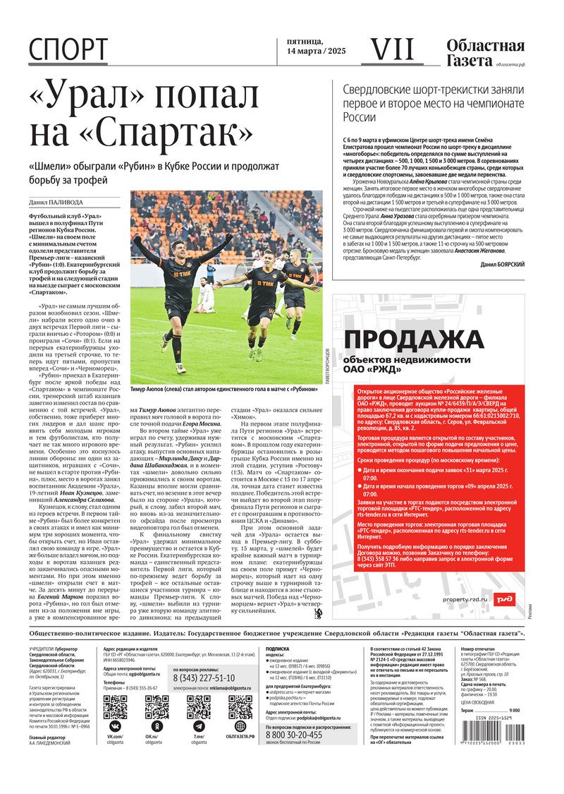 «Областная газета» № 53 (10160) от 14 марта 2025 года