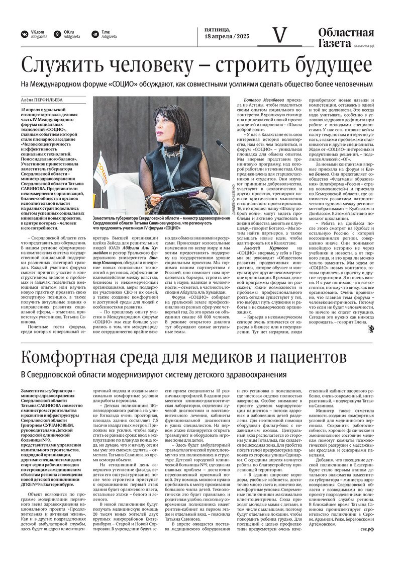 «Областная газета» № 84 (10191) от 17 апреля 2025 года