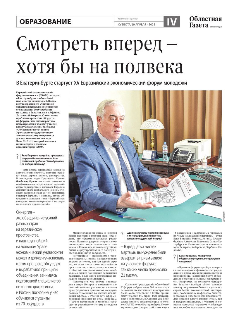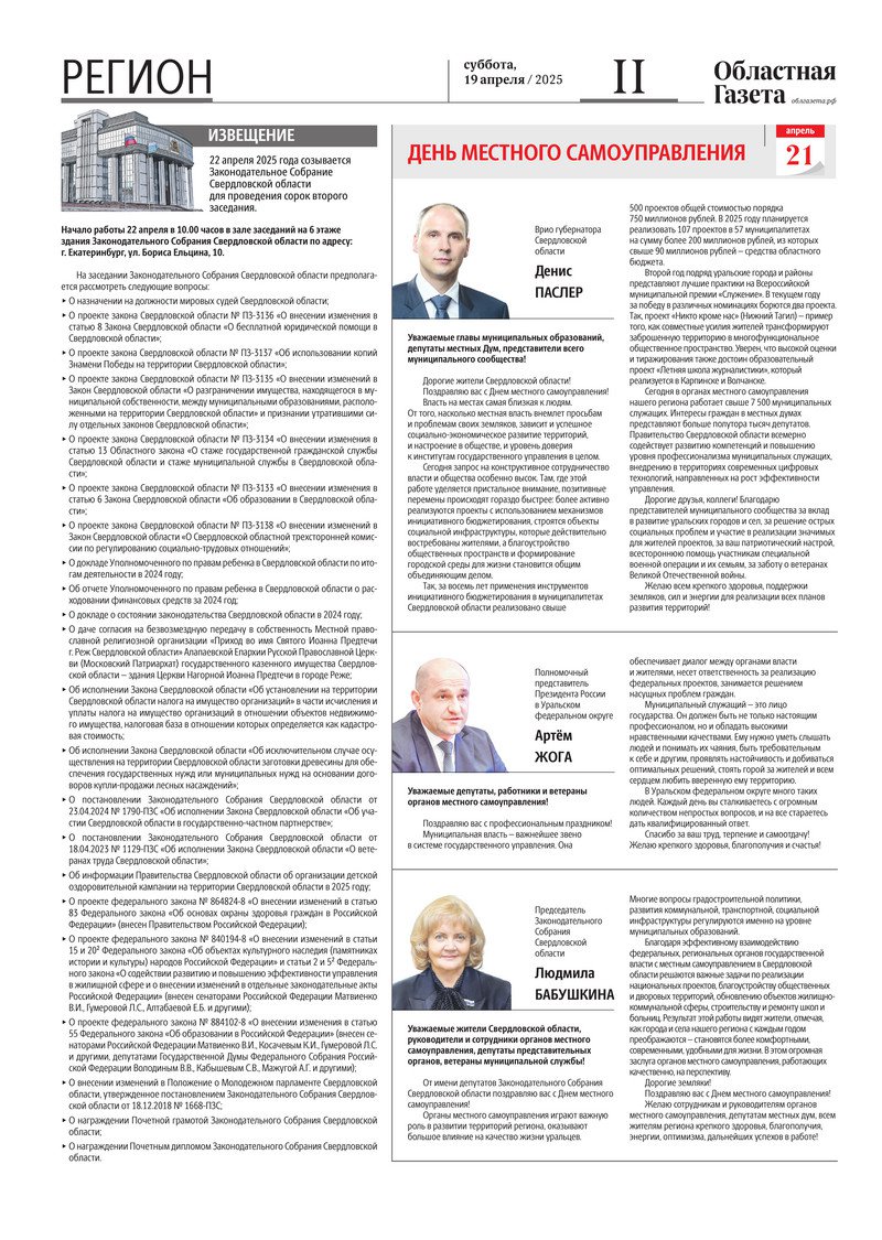 «Областная газета» № 85 (10192) от 19 апреля 2025 года