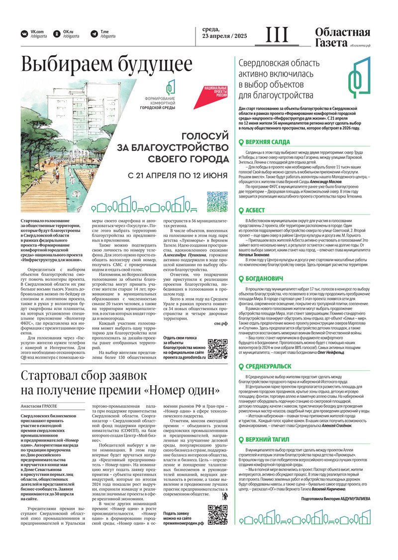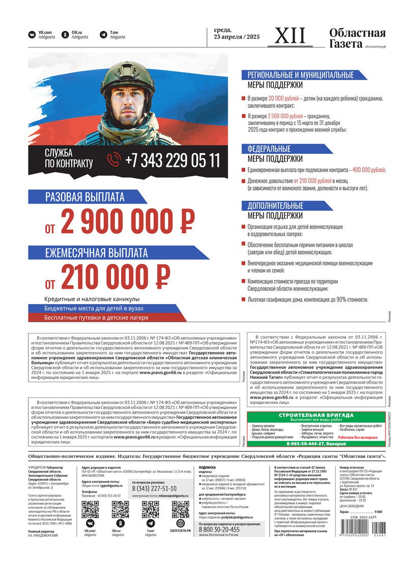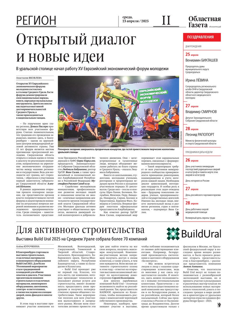 «Областная газета» № 87 (10194) от 23 апреля 2025 года