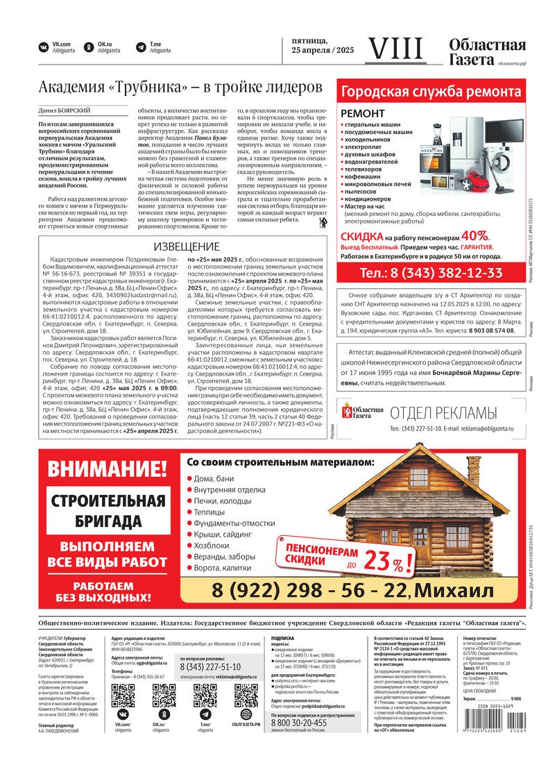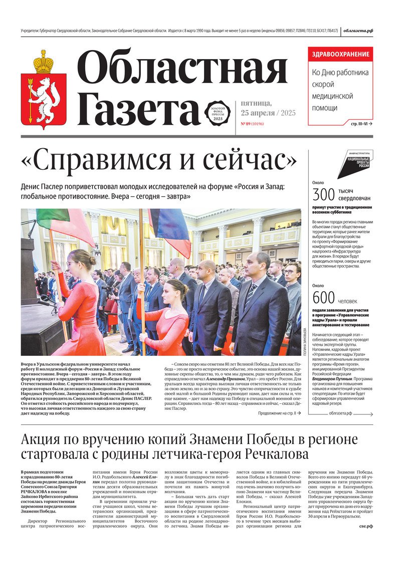 «Областная газета» № 89 (10196) от 25 апреля 2025 года