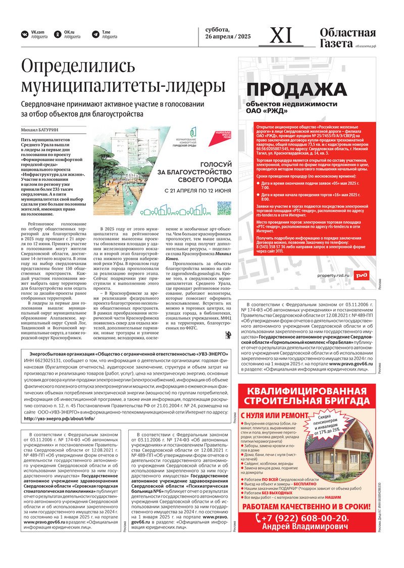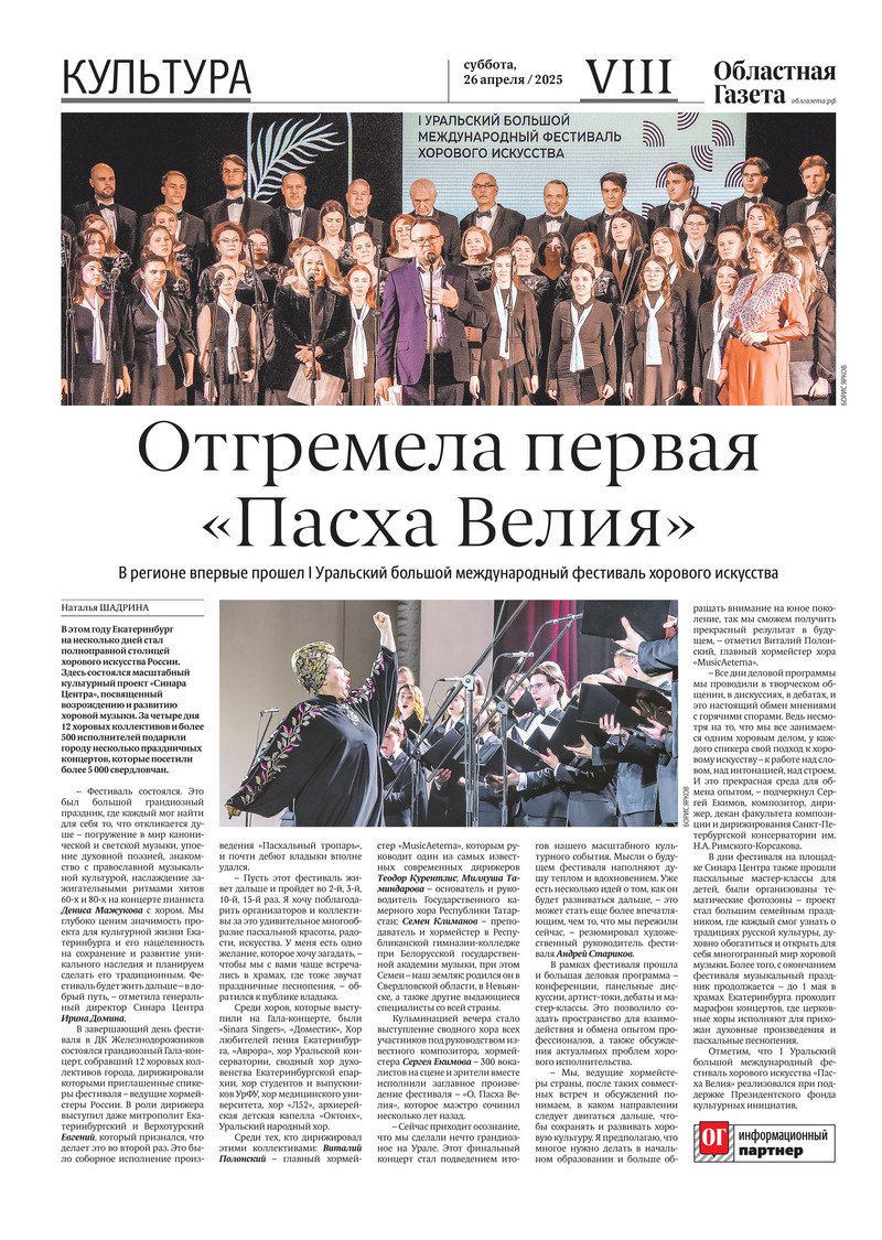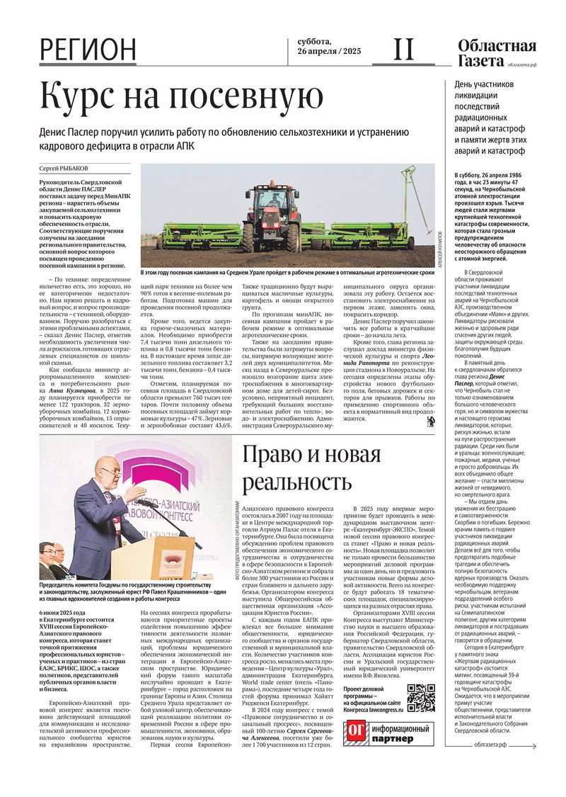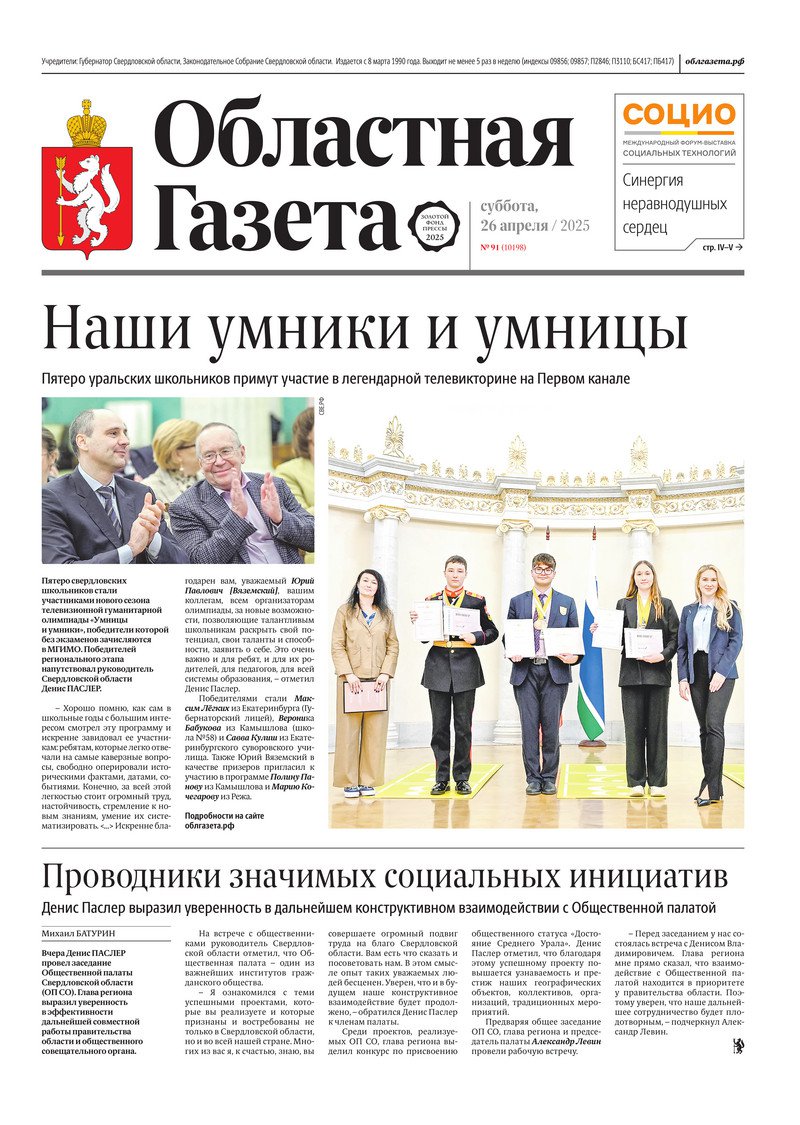 «Областная газета» № 91 (10198) от 26 апреля 2025 года