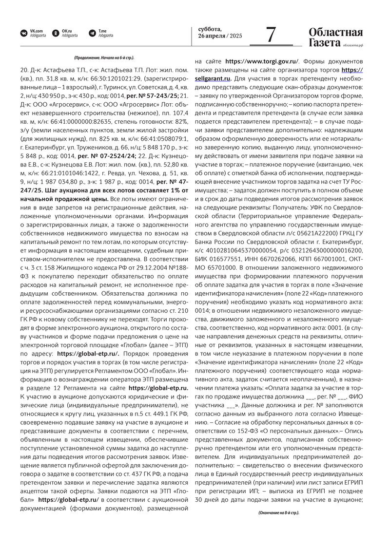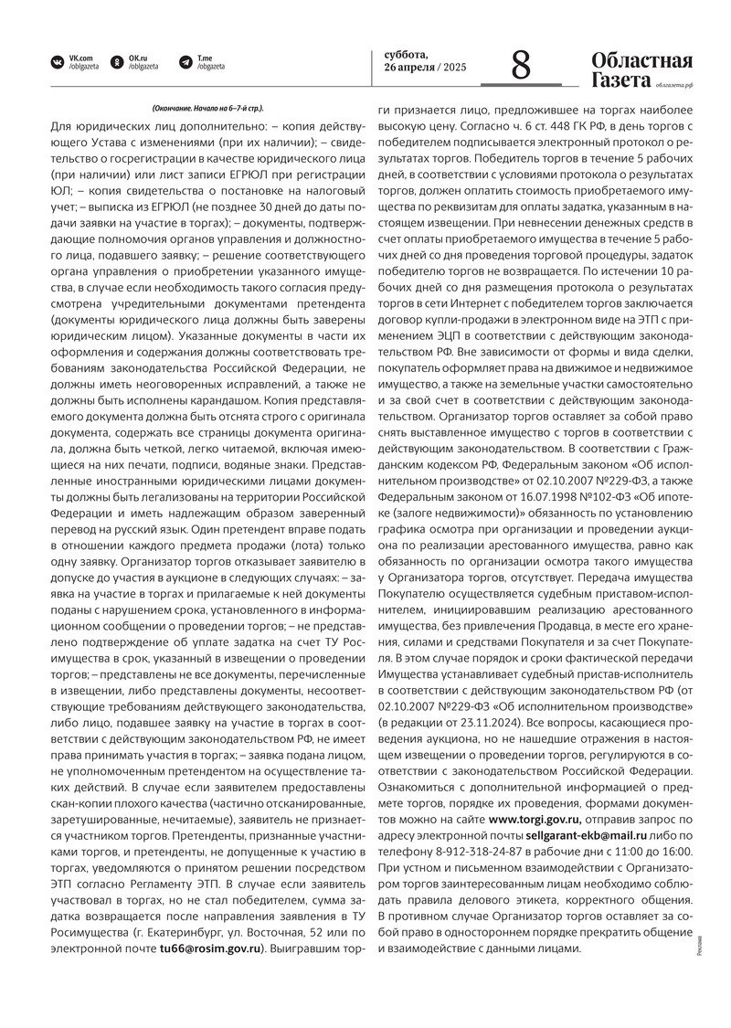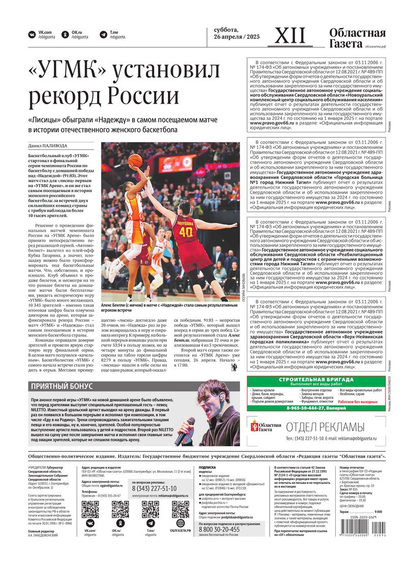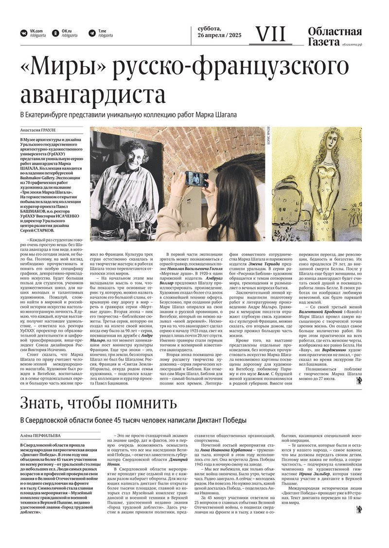«Областная газета» № 91 (10198) от 26 апреля 2025 года