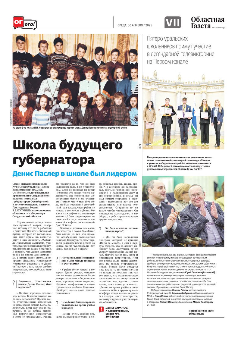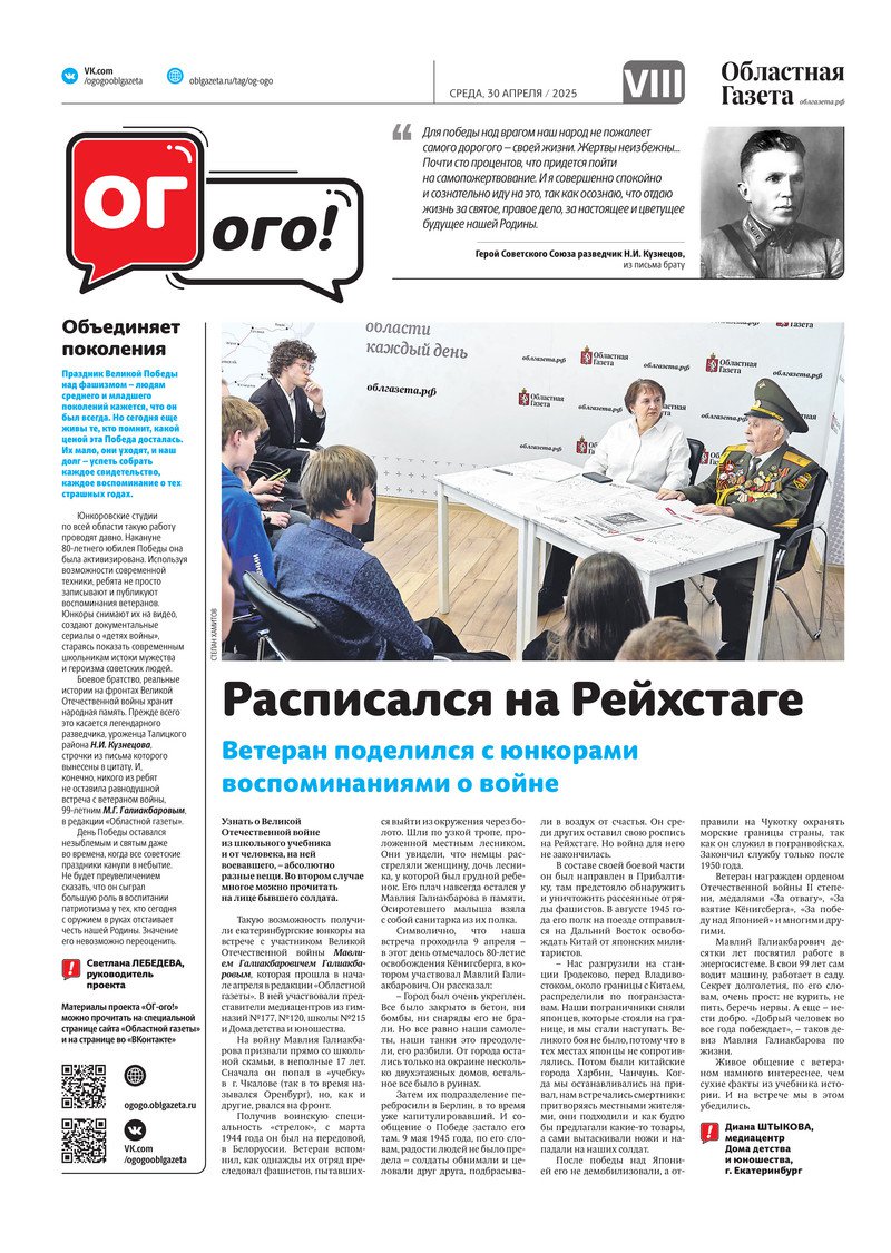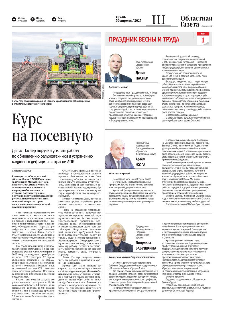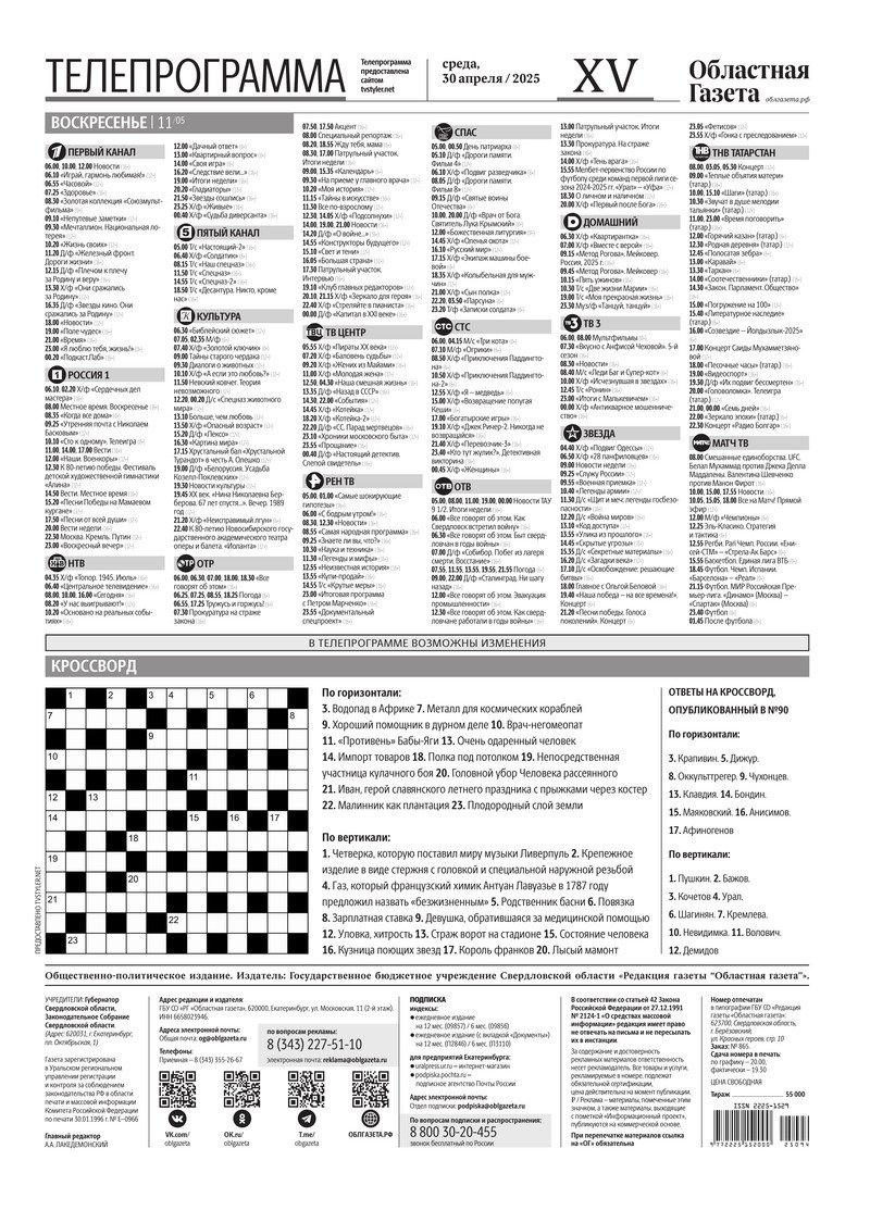 «Областная газета» № 94 (10201) от 29 апреля 2025 года