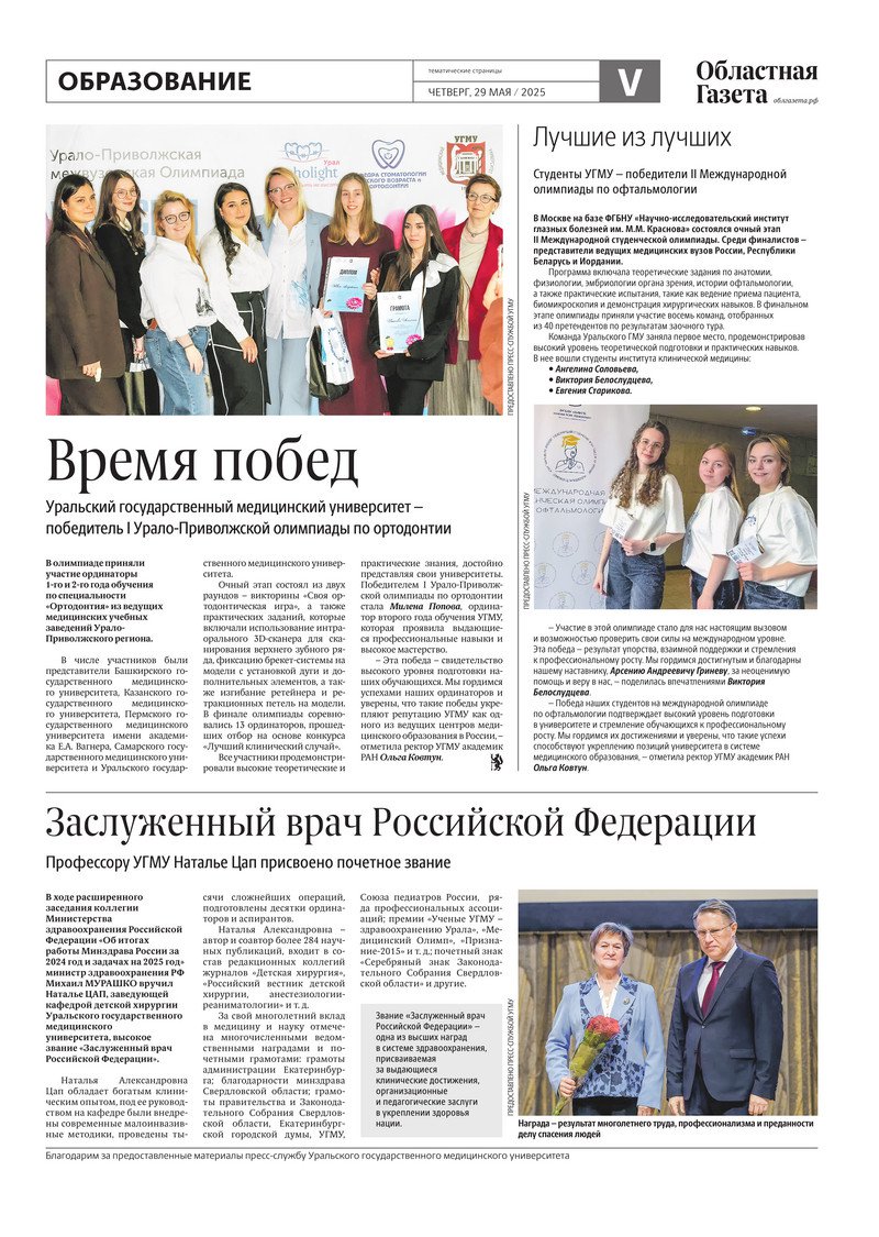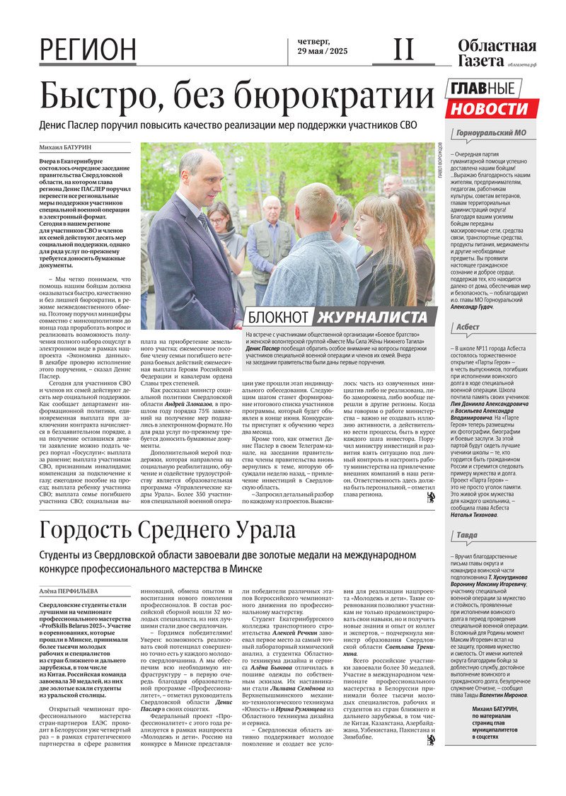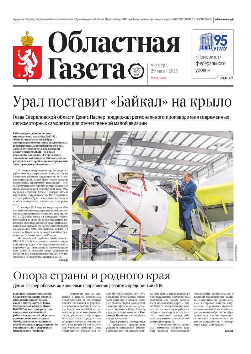 «Областная газета» № 113 (10220) от 29 мая 2025 года