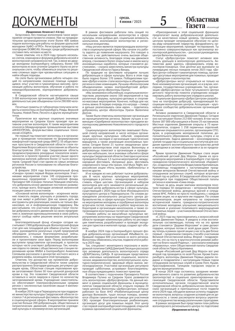 «Областная газета» № 118 (10225) от 4 июня 2025 года