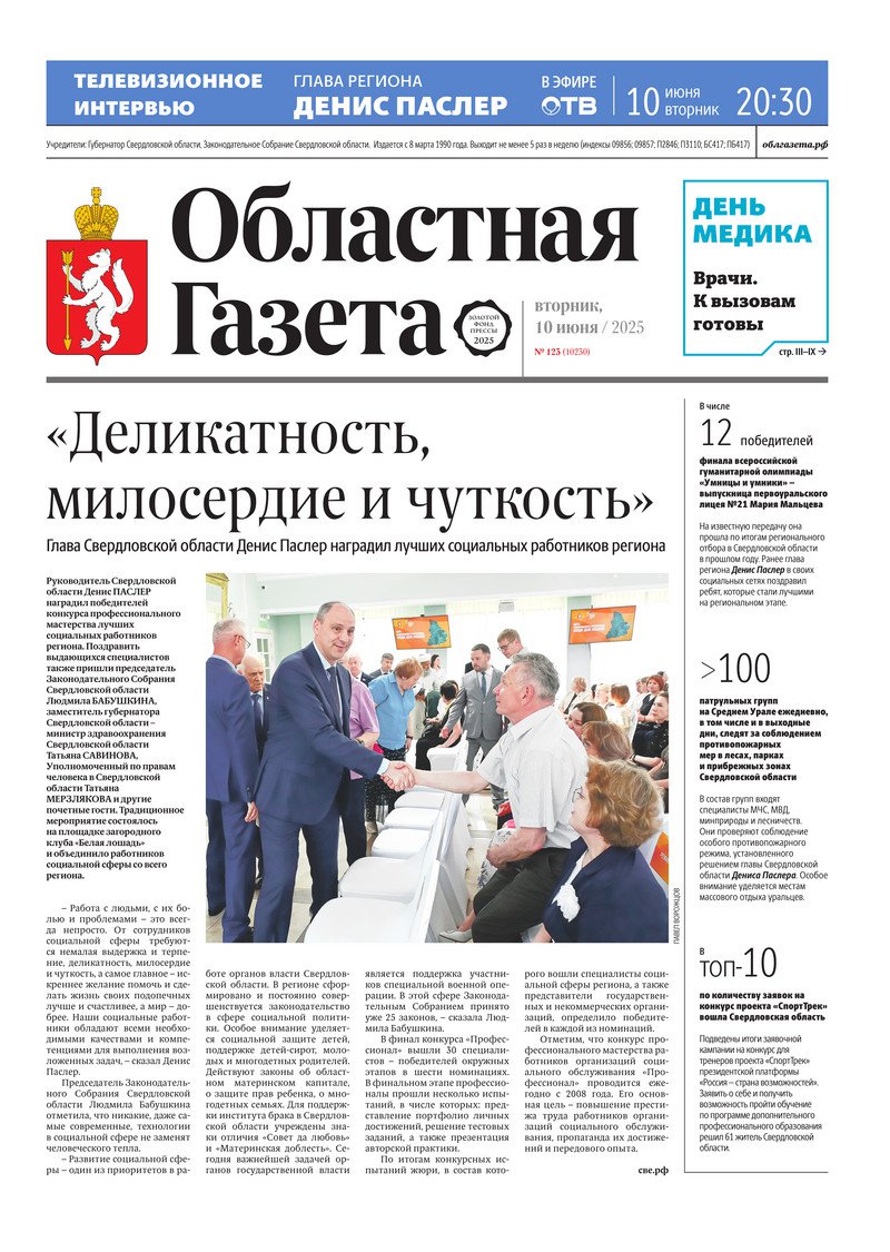 «Областная газета» № 123 (10230) от 10 июня 2025 года