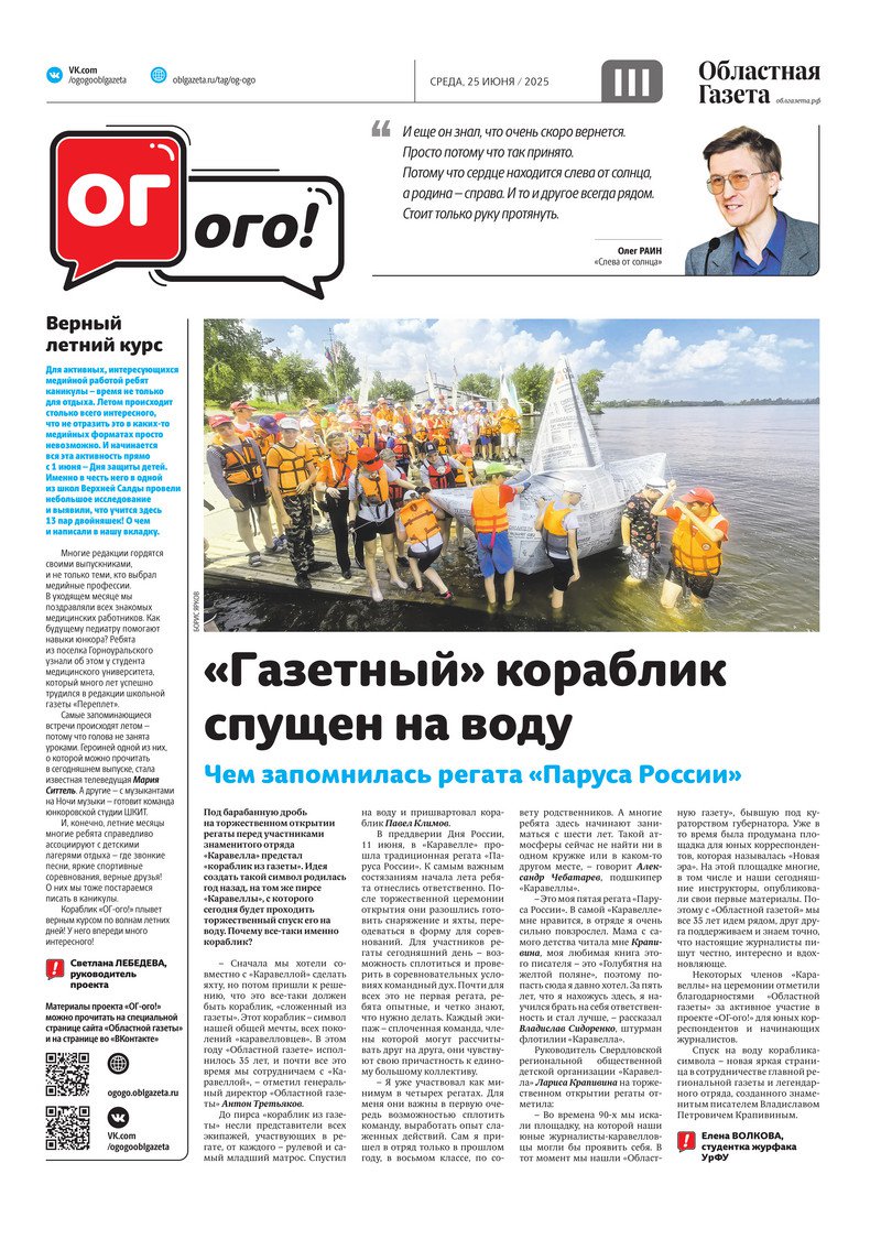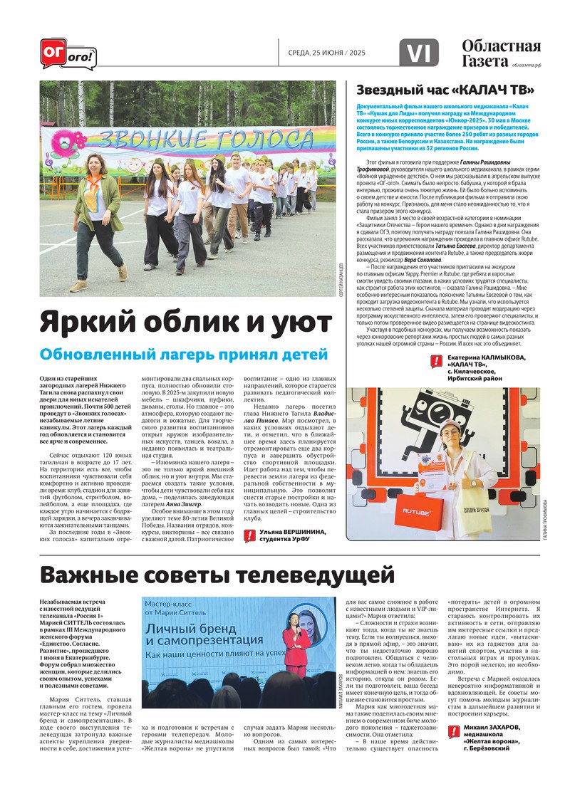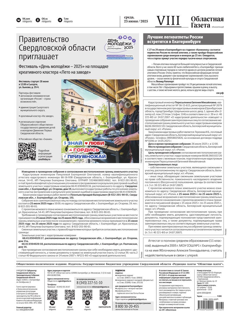 «Областная газета» № 134 (10241) от 25 июня 2025 года