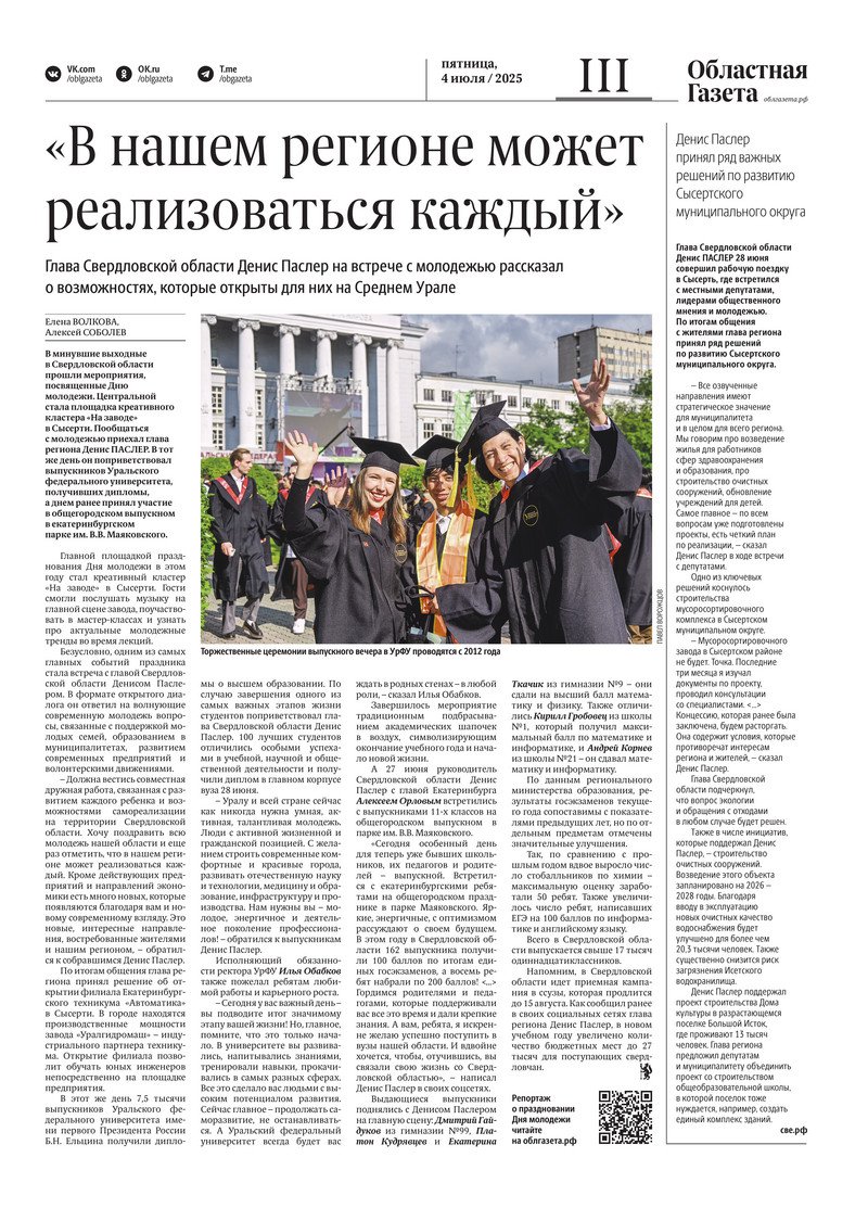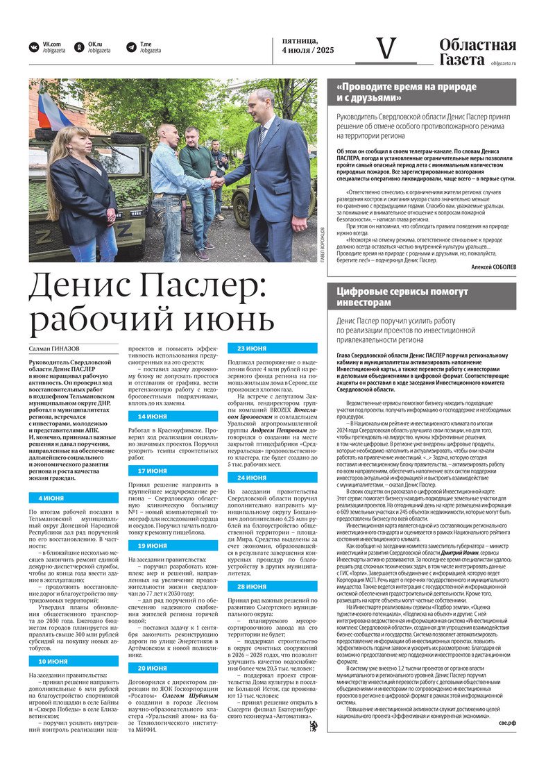 «Областная газета» № 143 (10250) от 3 июля 2025 года