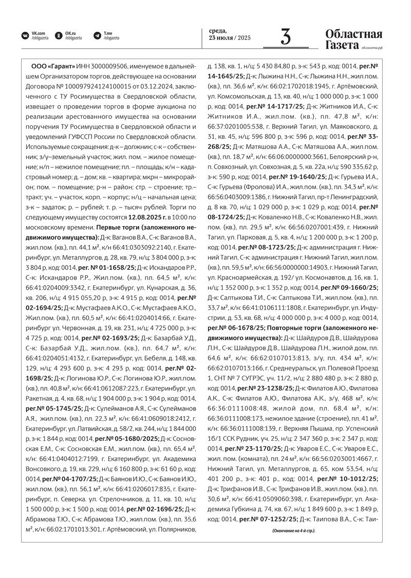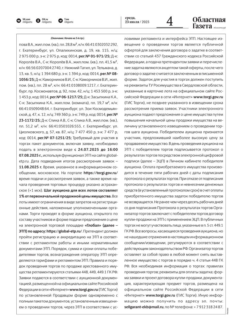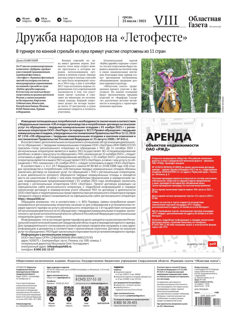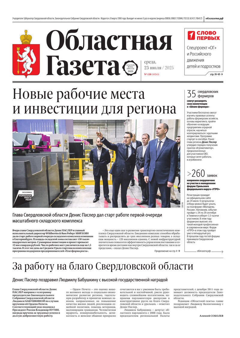 «Областная газета» № 158 (10265) от 23 июля 2025 года