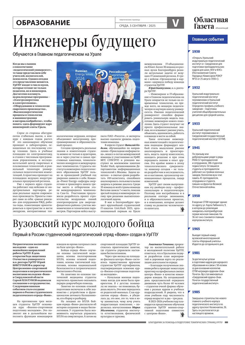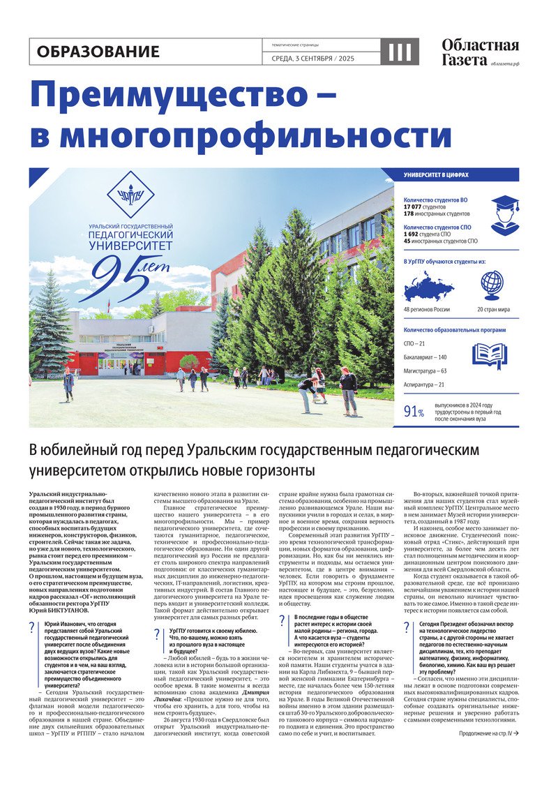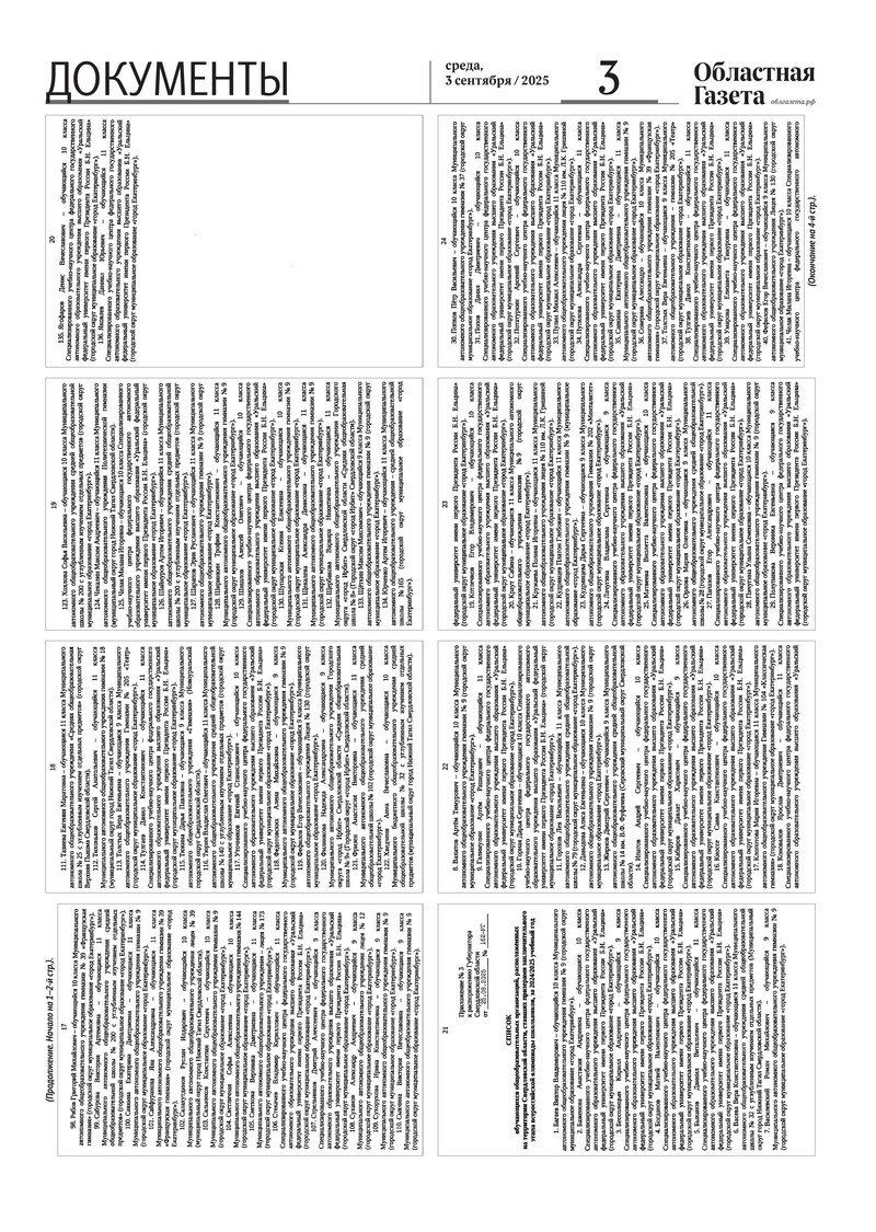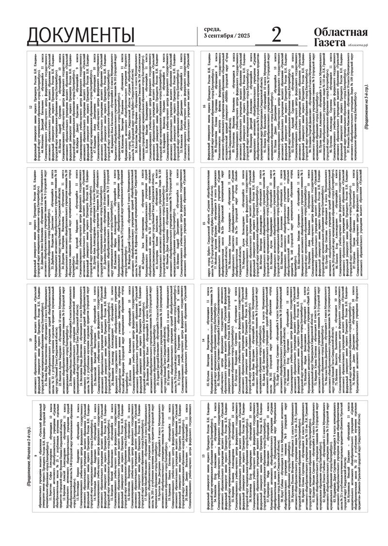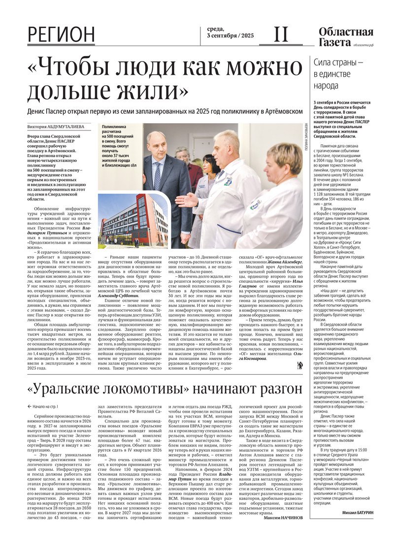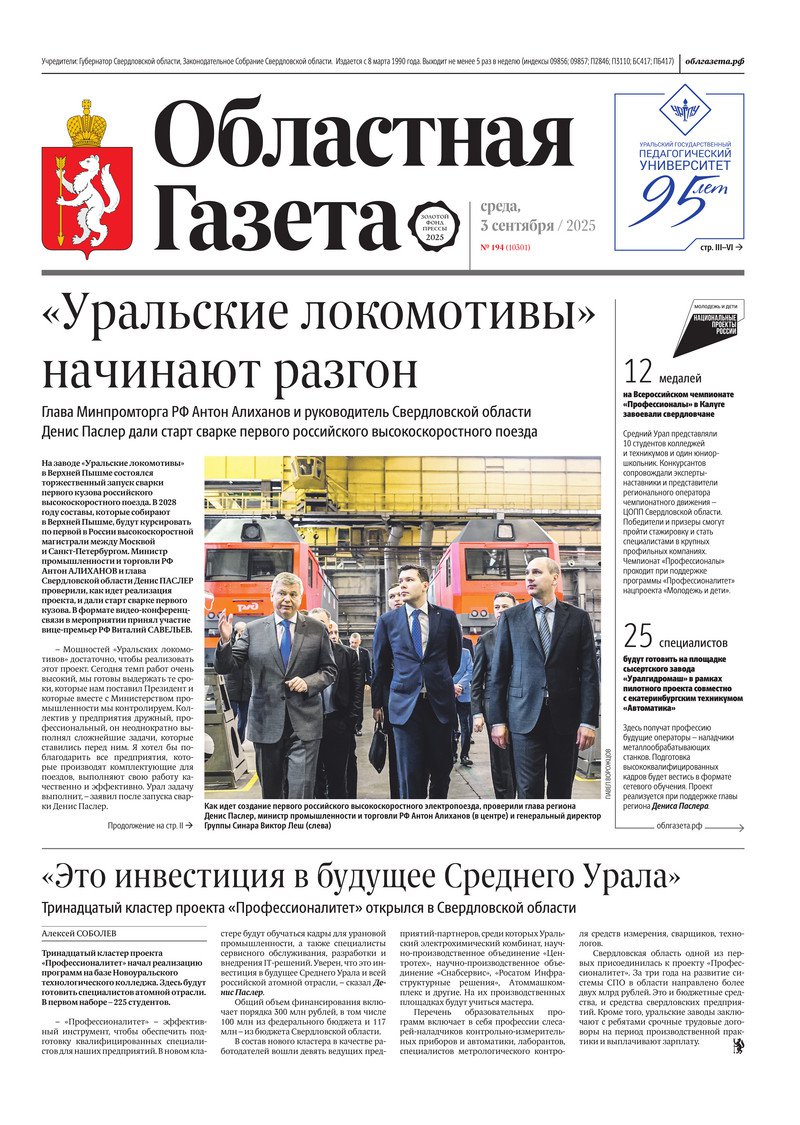 «Областная газета» № 194 (10301) от 3 сентября 2025 года