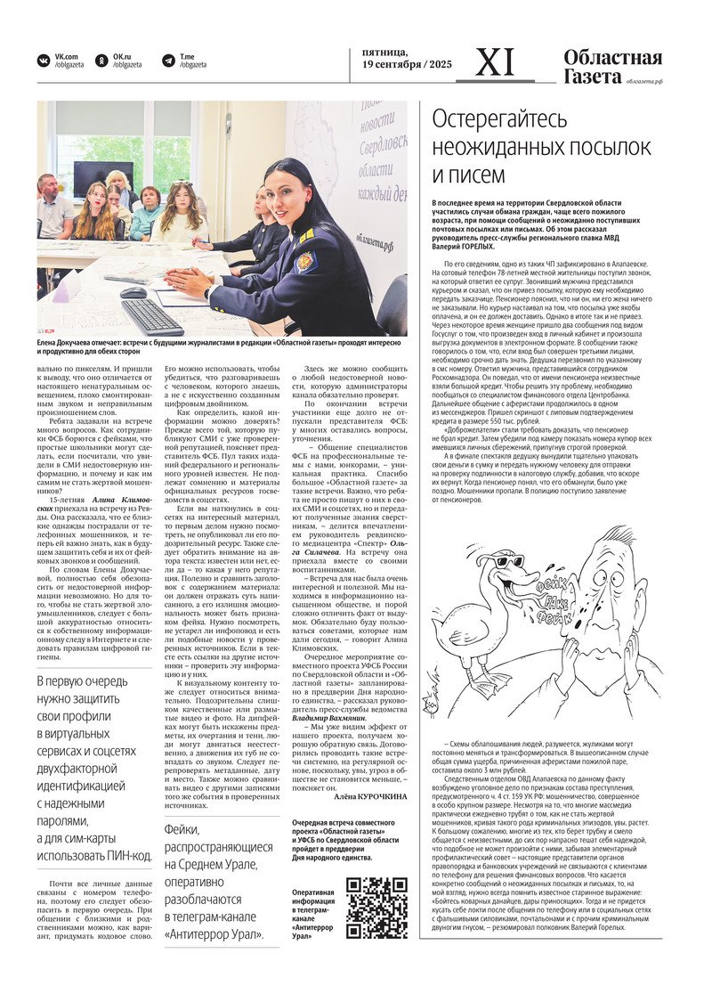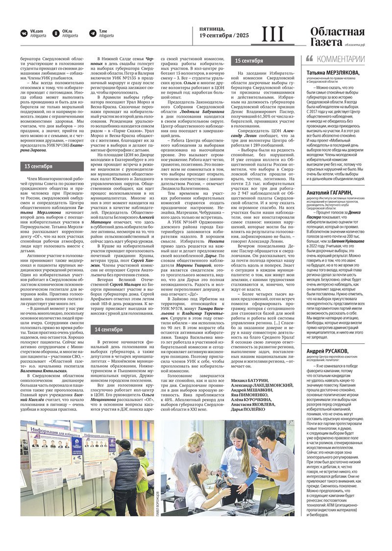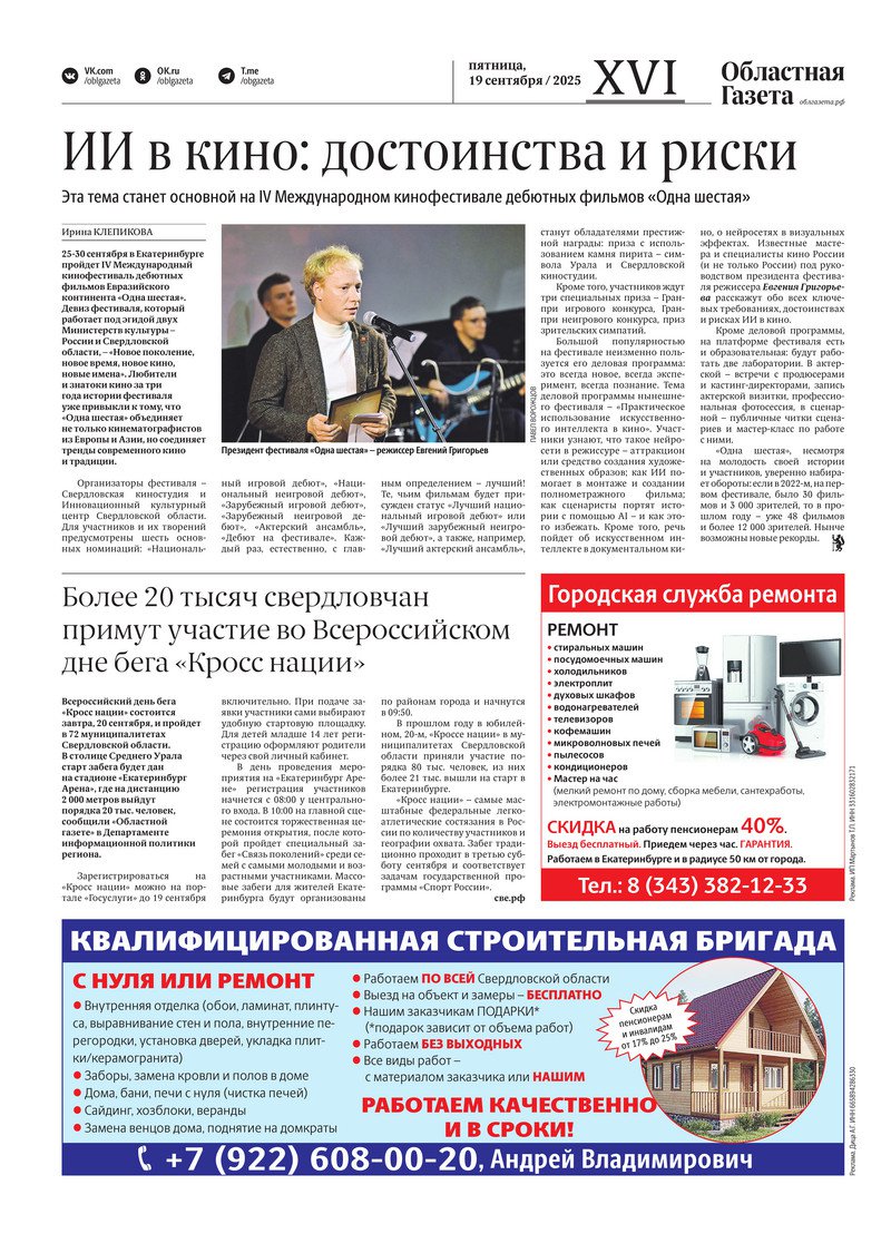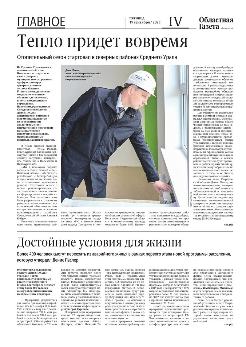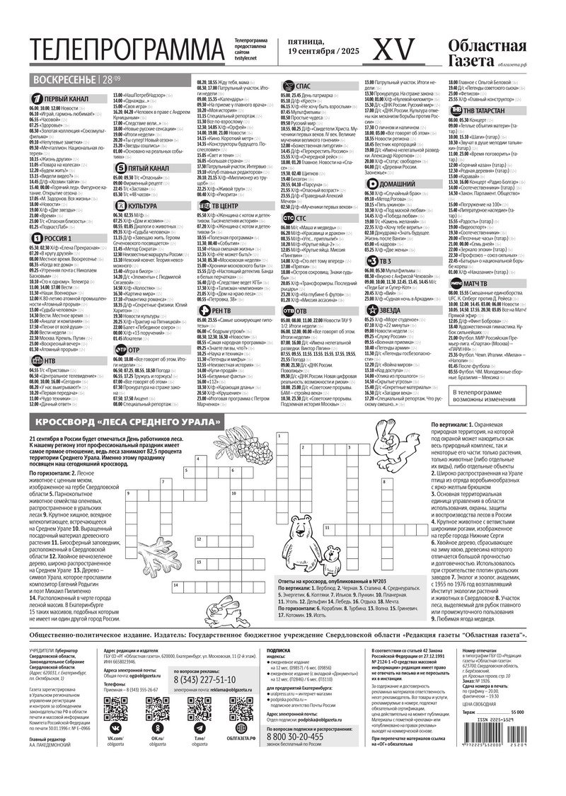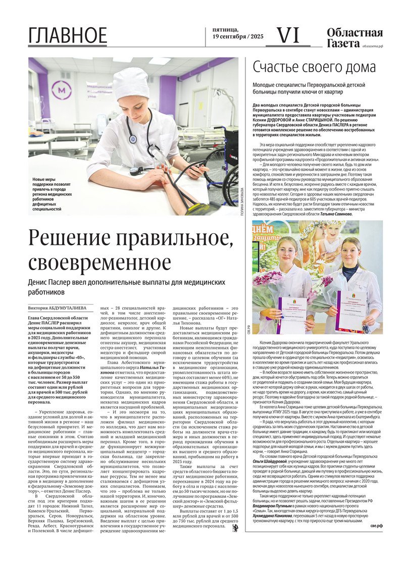 «Областная газета» № 209 (10316) от 18 сентября 2025 года