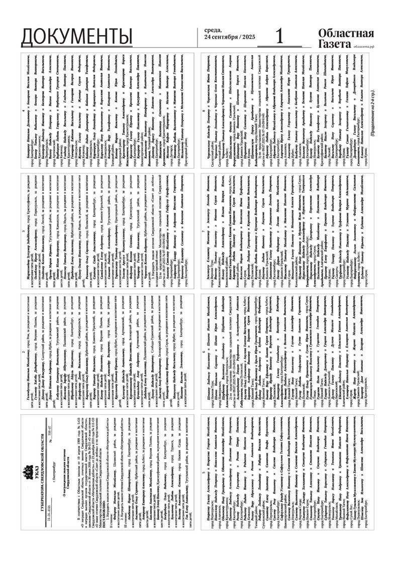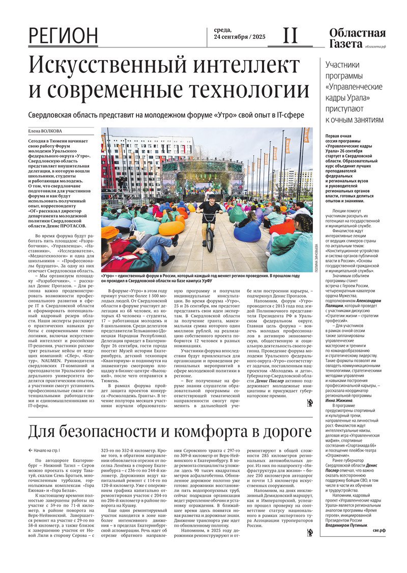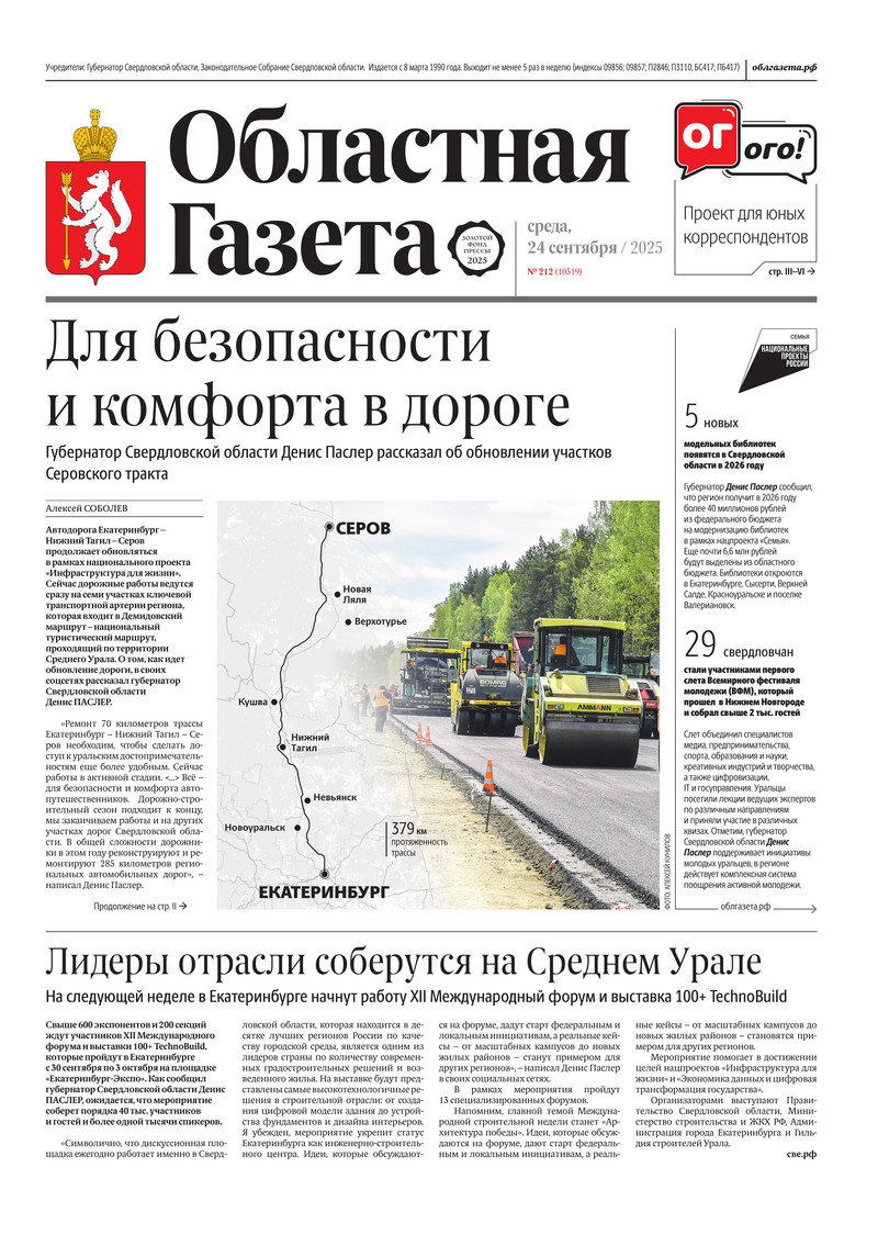 «Областная газета» № 212 (10319) от 24 сентября 2025 года