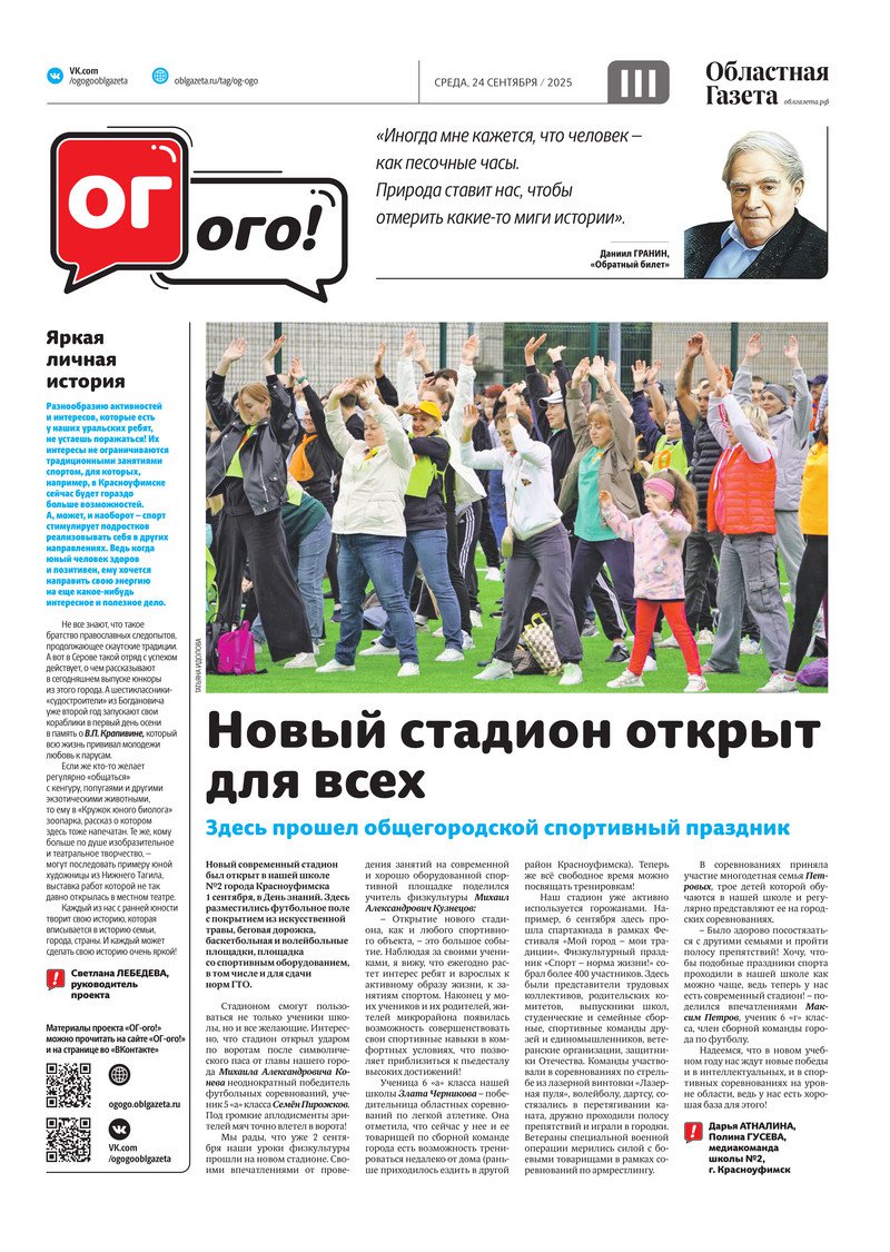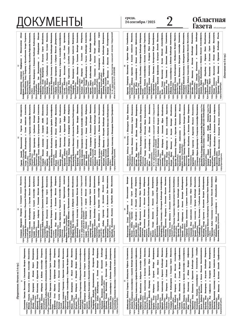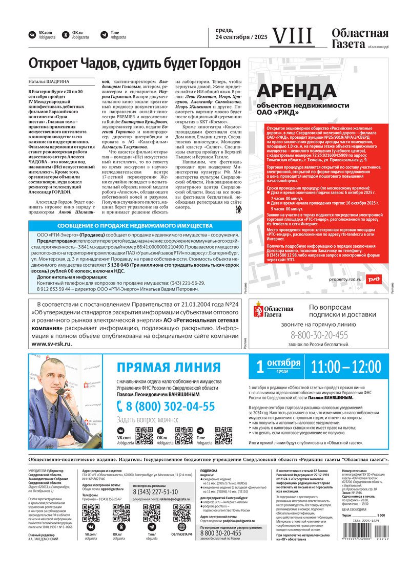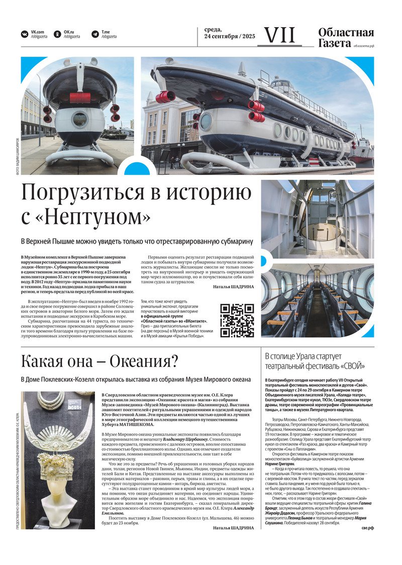 «Областная газета» № 212 (10319) от 24 сентября 2025 года