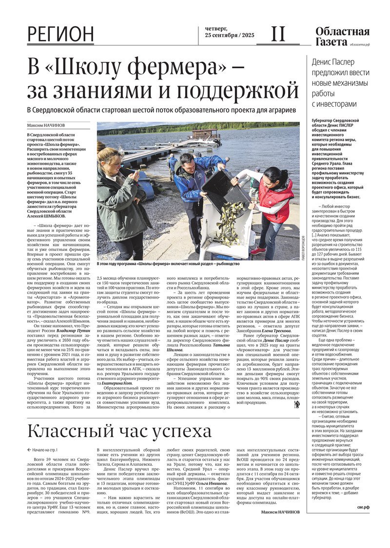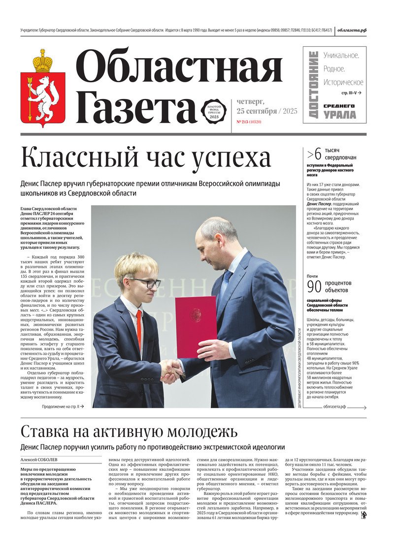 «Областная газета» № 213 (10320) от 25 сентября 2025 года
