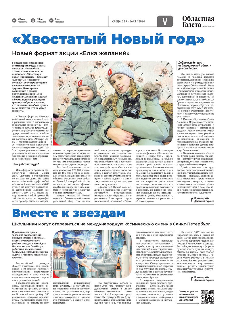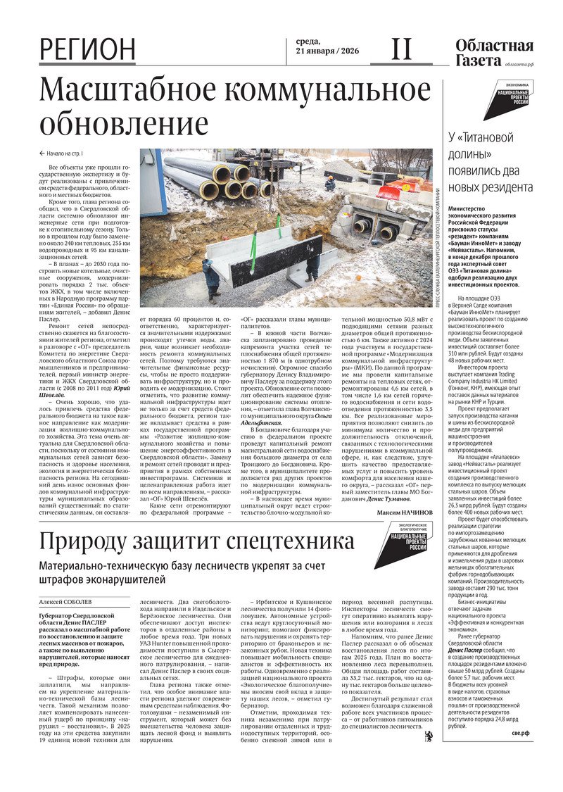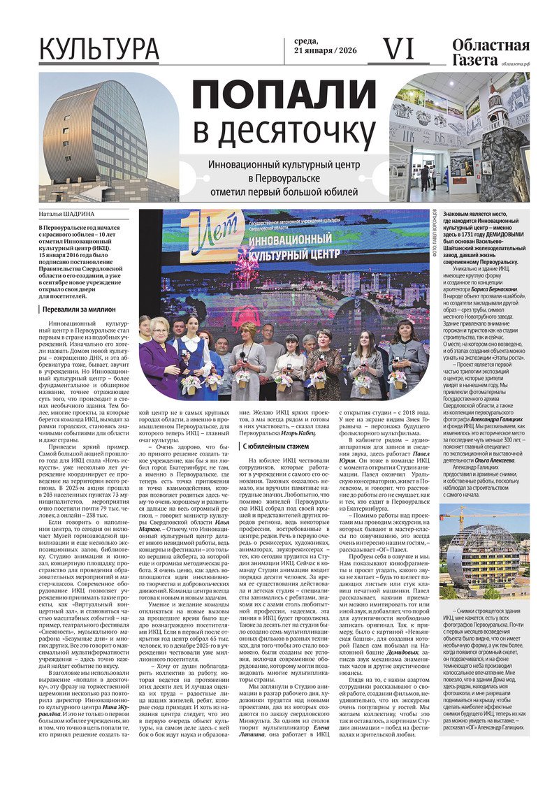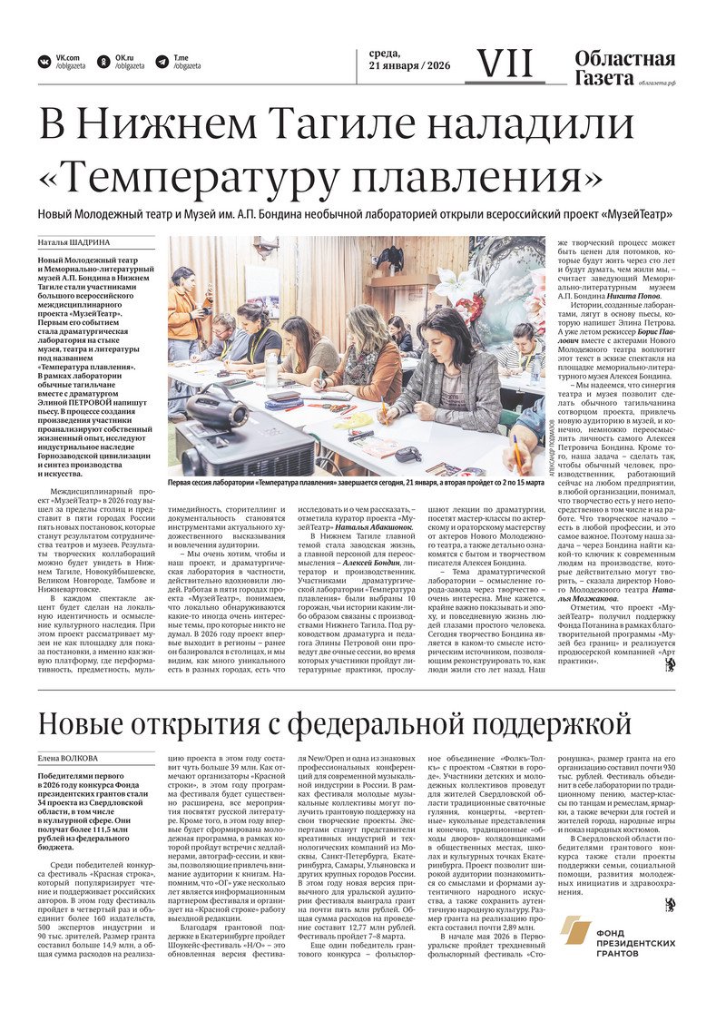 «Областная газета» № 8 (10408) от 21 января 2026 года