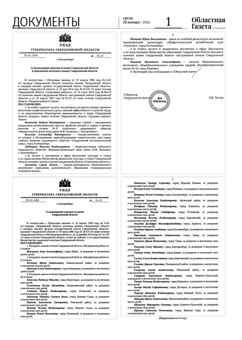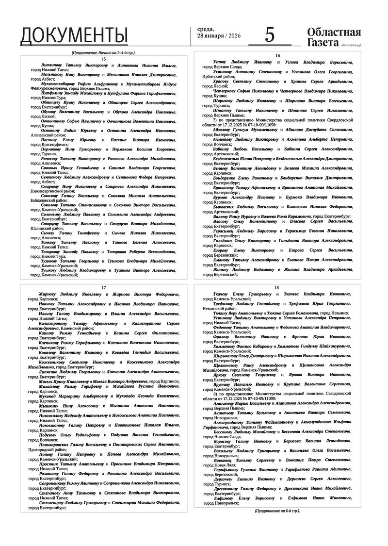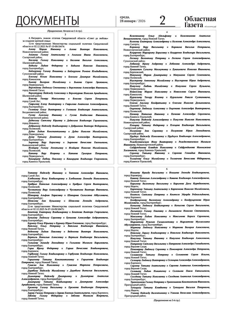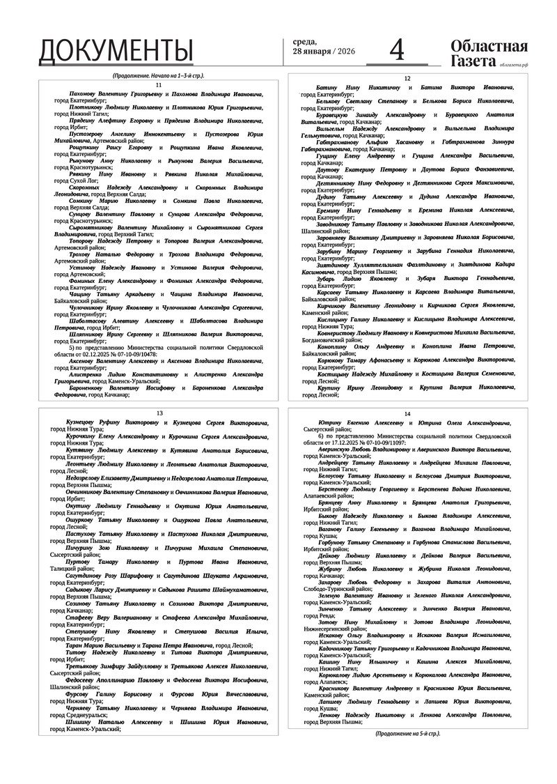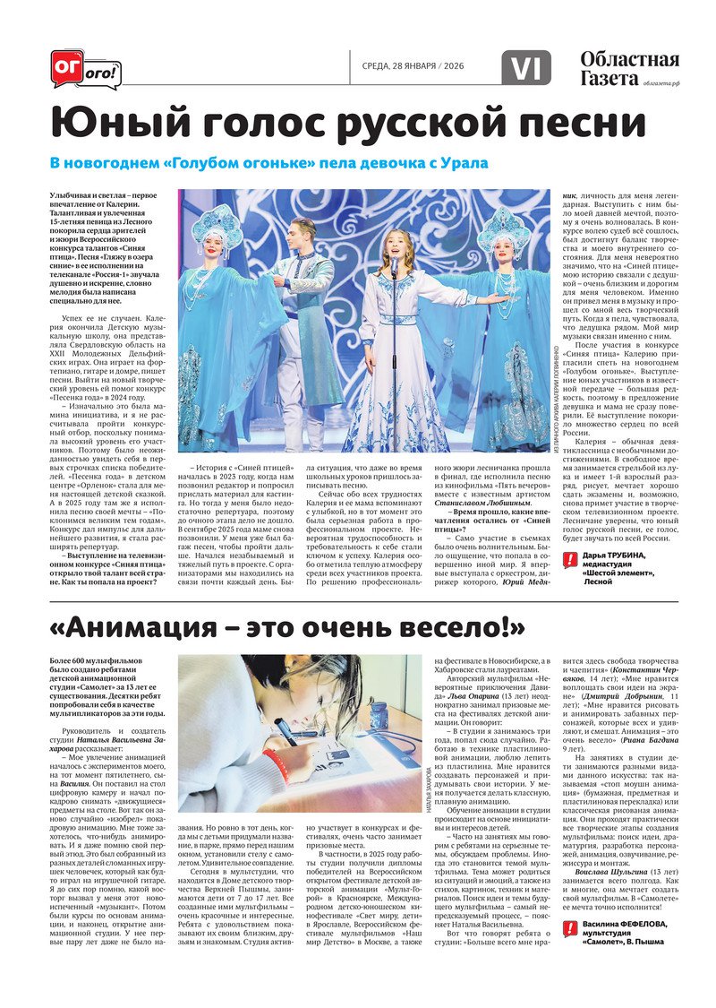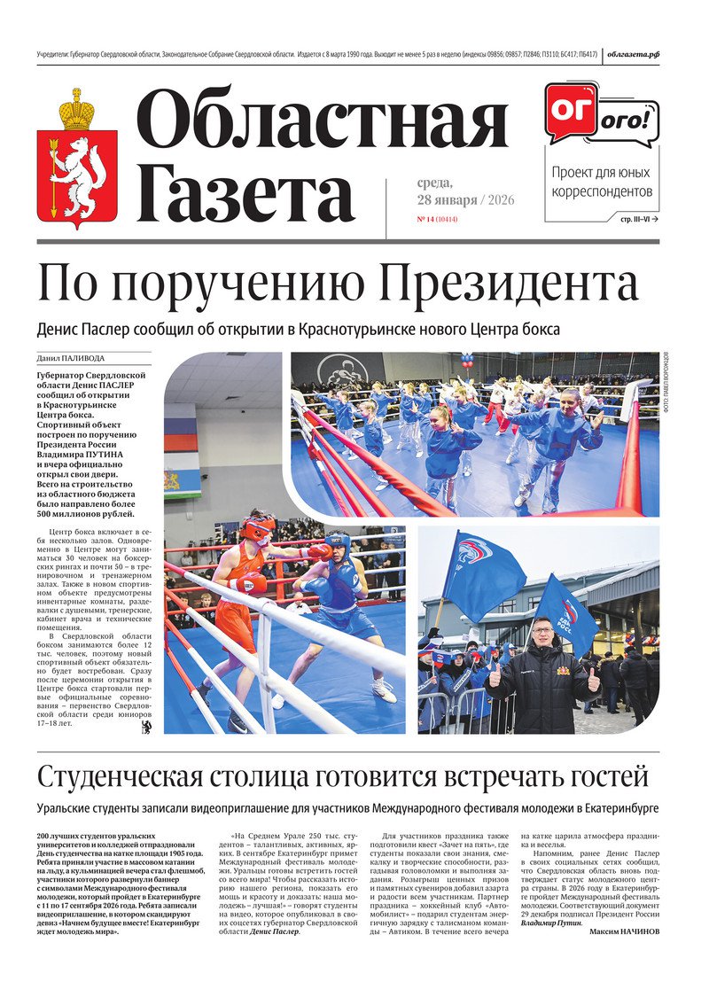 «Областная газета» № 14 (10414) от 28 января 2026 года
