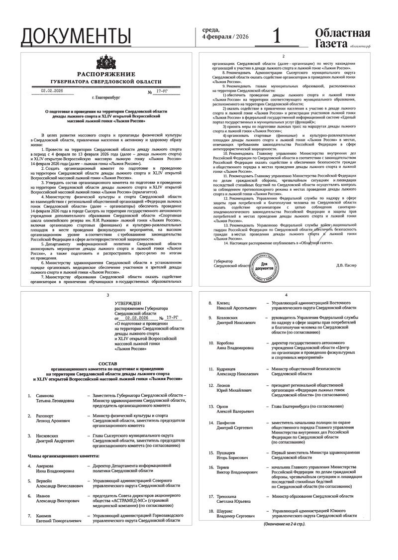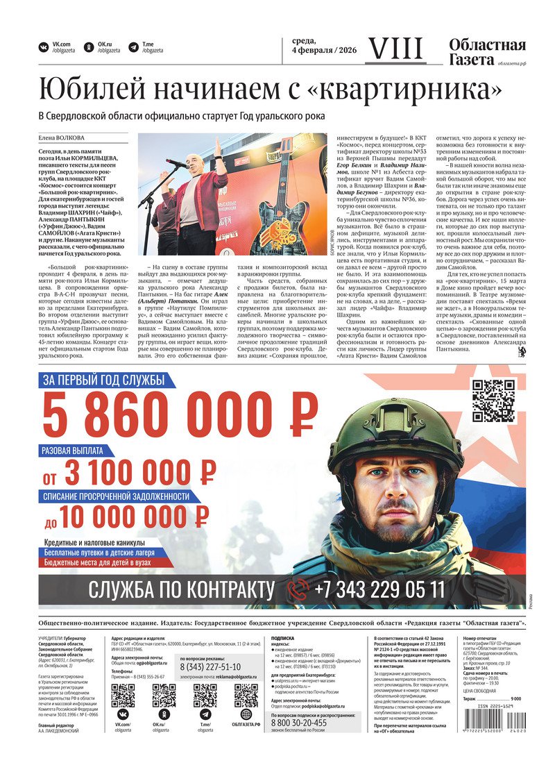 «Областная газета» № 20 (10420) от 4 февраля 2026 года