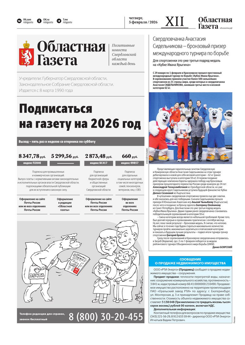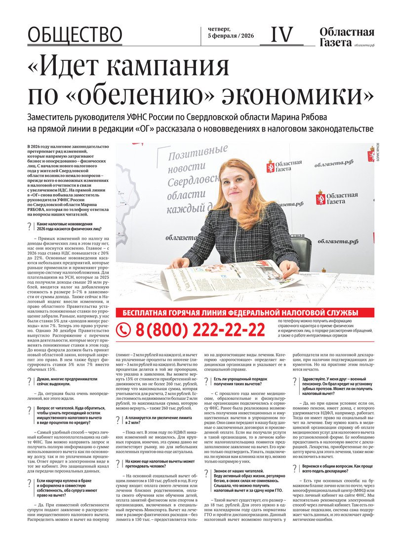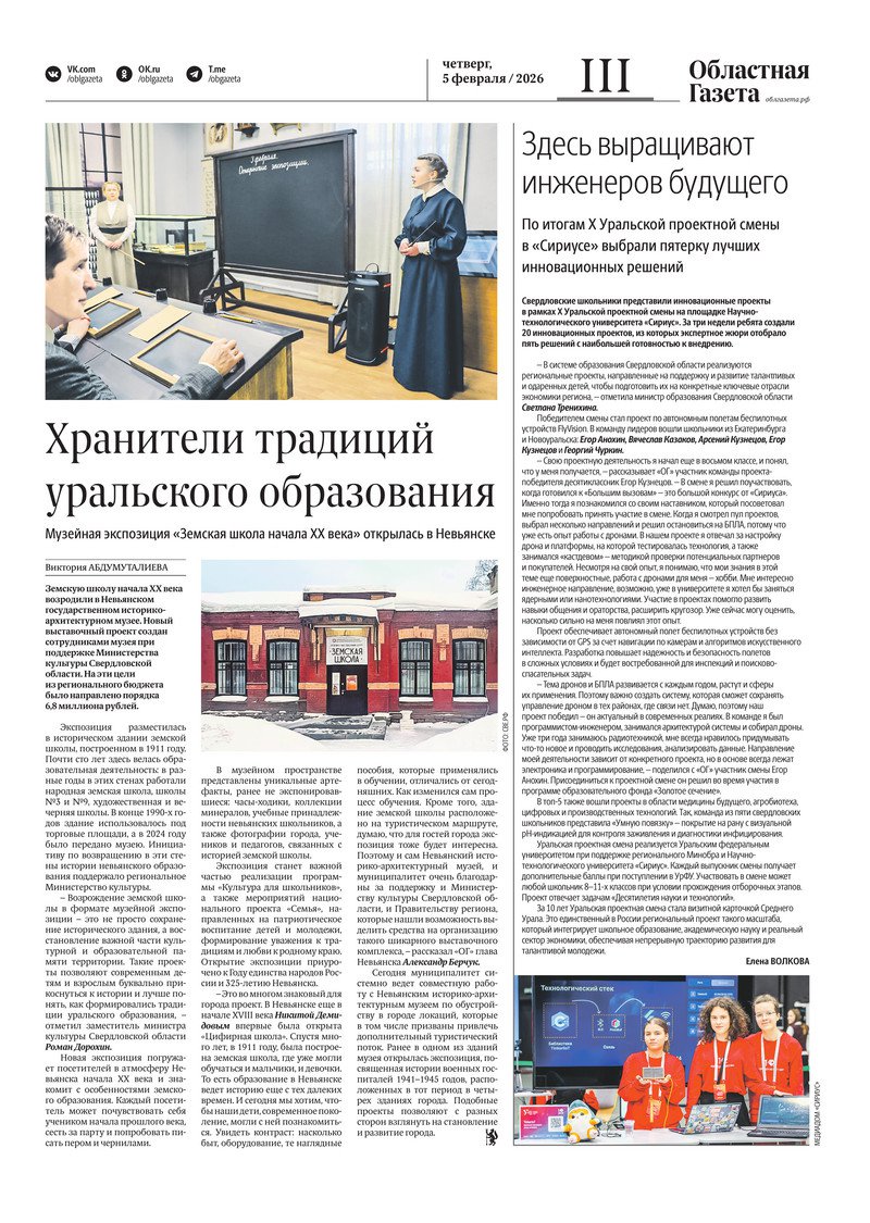 «Областная газета» № 21 (10421) от 5 февраля 2026 года