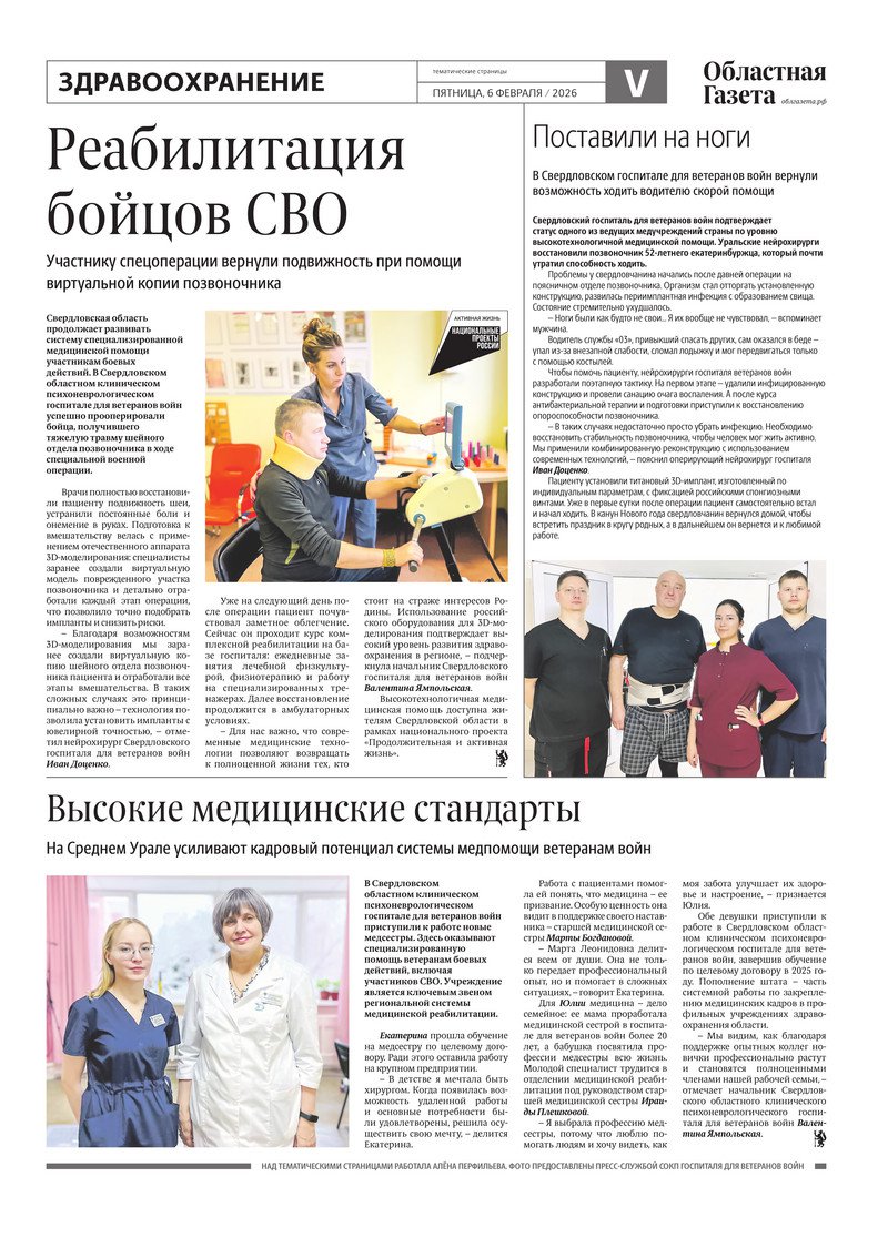 «Областная газета» № 22 (10422) от 6 февраля 2026 года