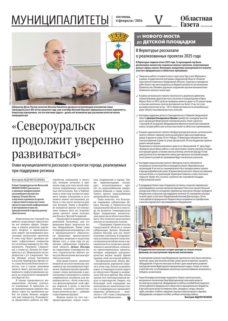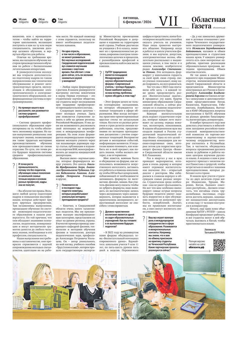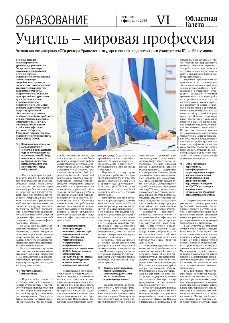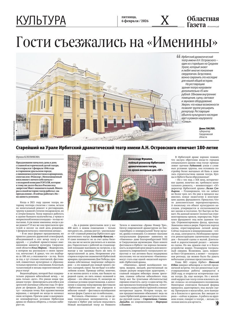 «Областная газета» № 23 (10423) от 6 февраля 2026 года