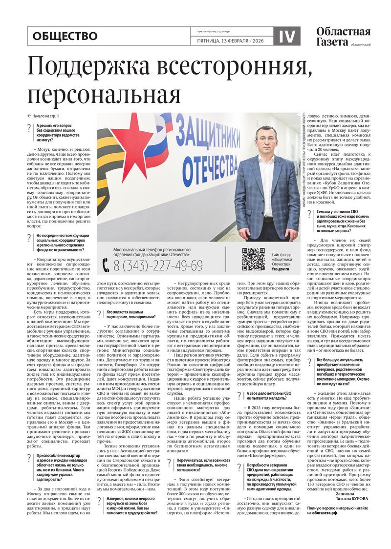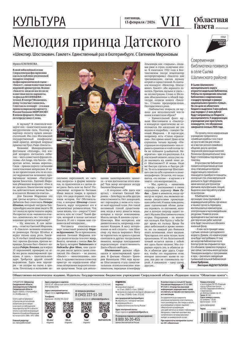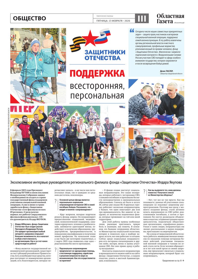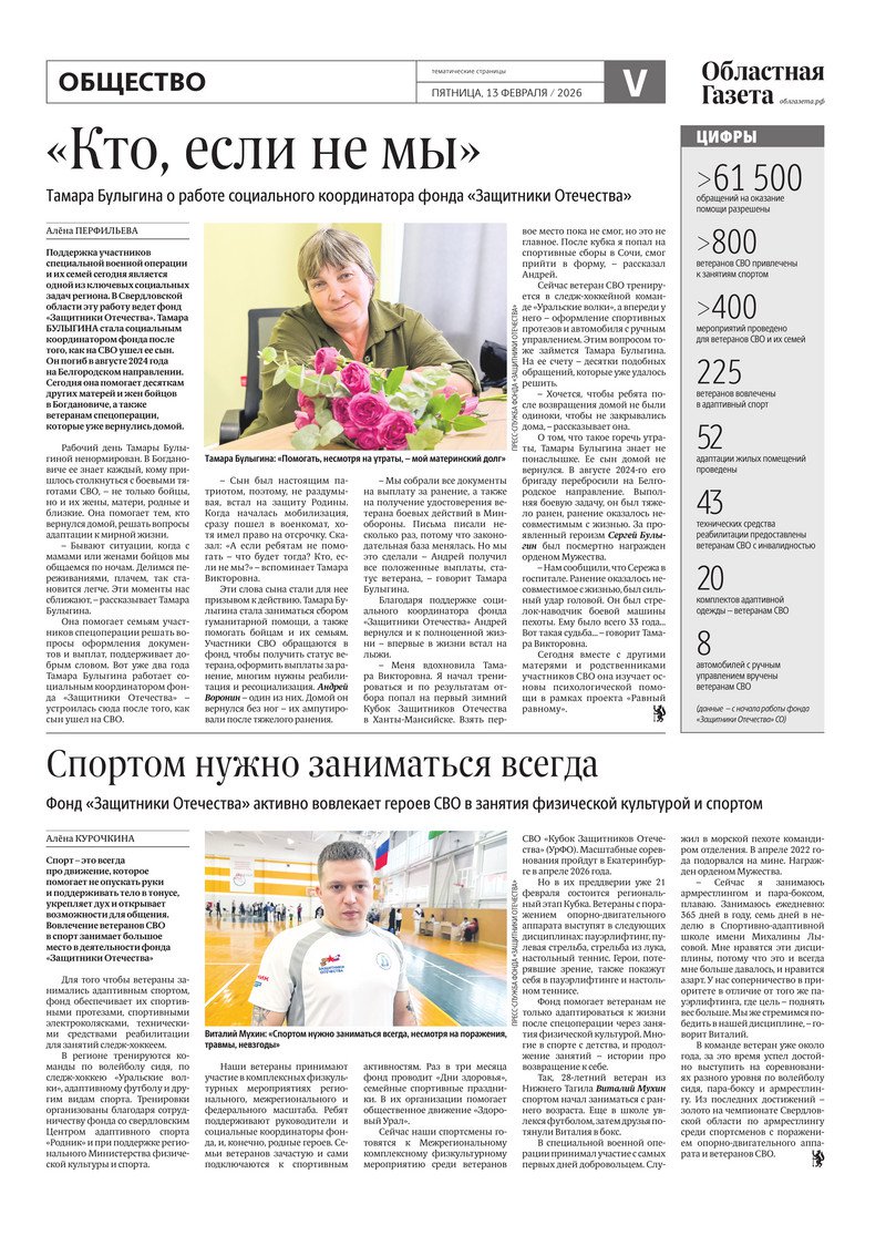 «Областная газета» № 28 (10428) от 13 февраля 2026 года