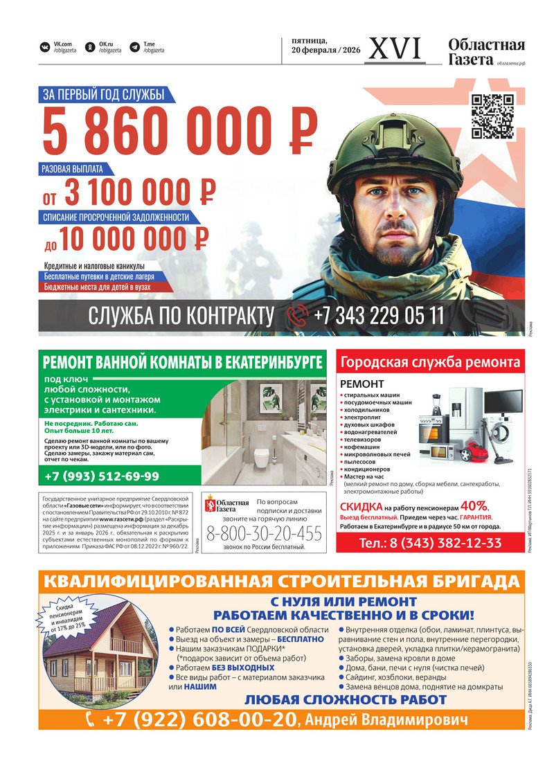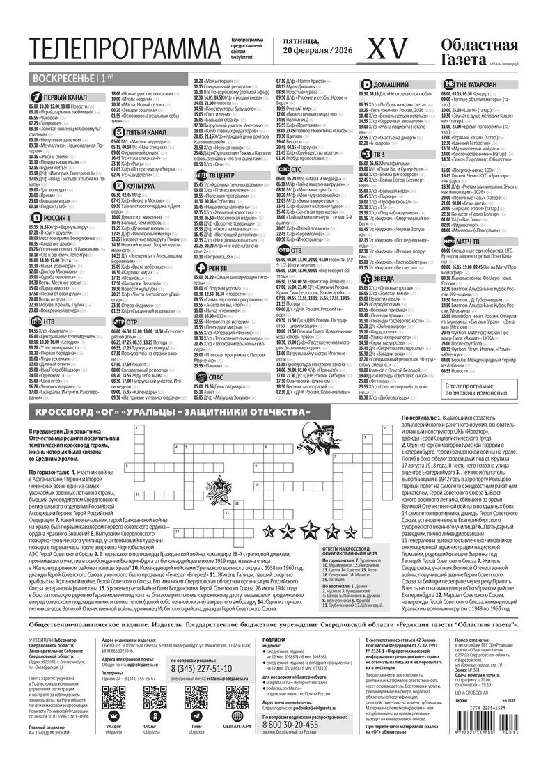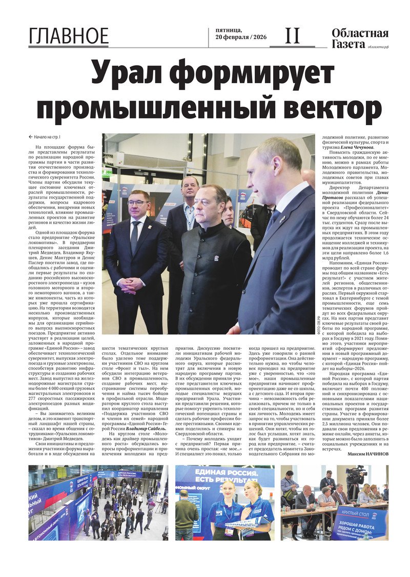 «Областная газета» № 35 (10435) от 20 февраля 2026 года