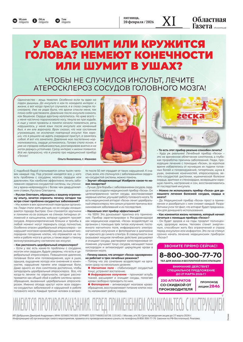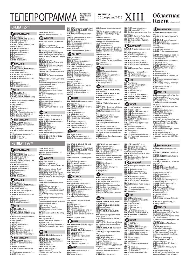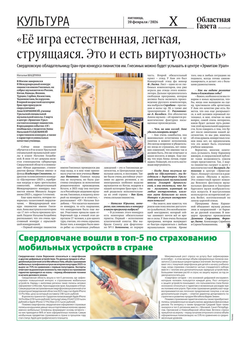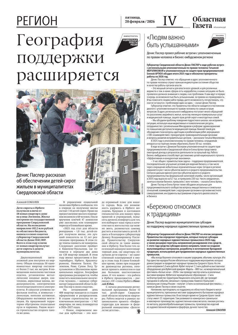 «Областная газета» № 35 (10435) от 20 февраля 2026 года
