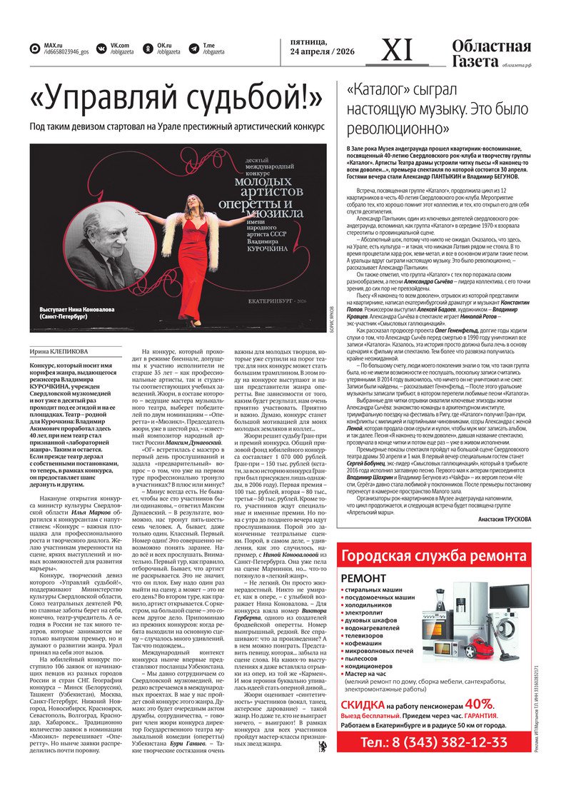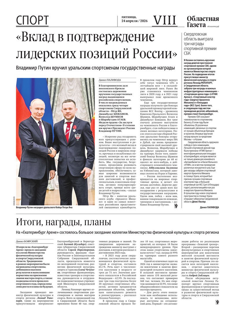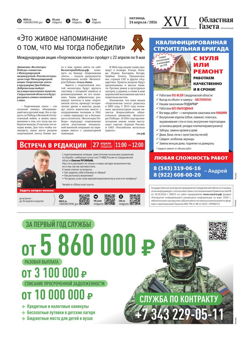 «Областная газета» № 87 (10487) от 24 апреля 2026 года