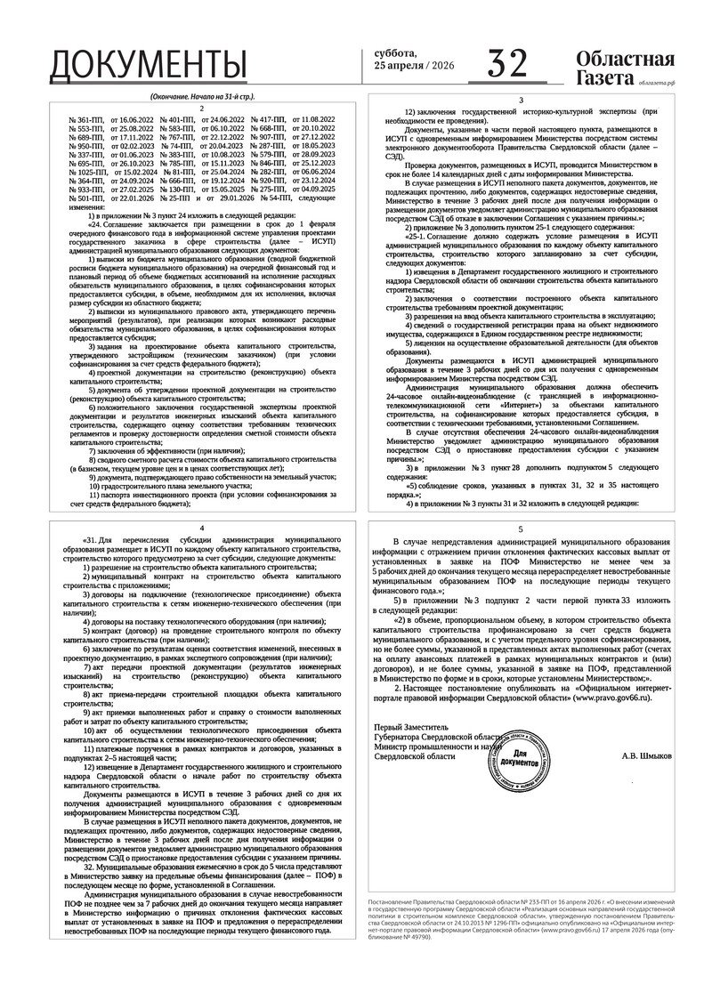 «Областная газета» № 88 (10488) от 25 апреля 2026 года